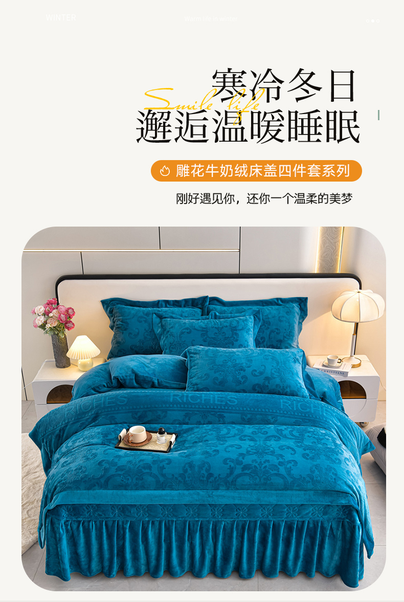 (总)馨梦缘 2025新款高克重加厚牛奶绒雕花床盖款四件套-控价228,雕花床盖款-爱意大红,雕花床盖款-爱意灰,雕花床盖款-爱意蓝,繁花-少女粉,欧式-象牙白,枫叶-奶油白,时尚-米白
