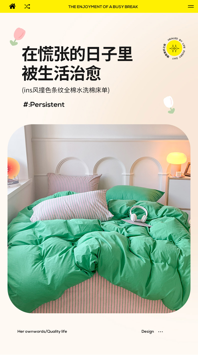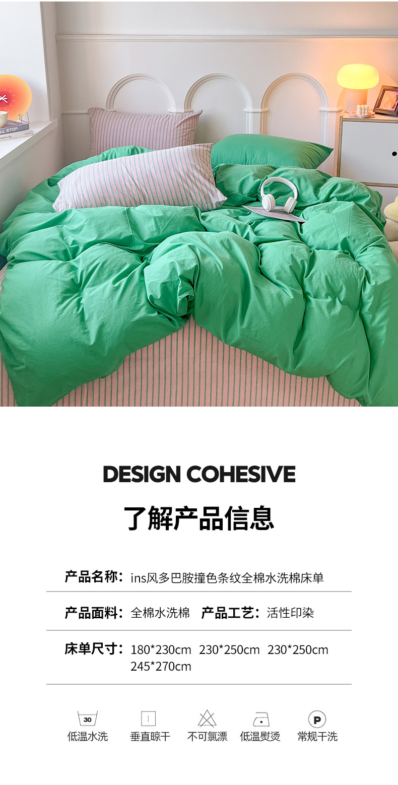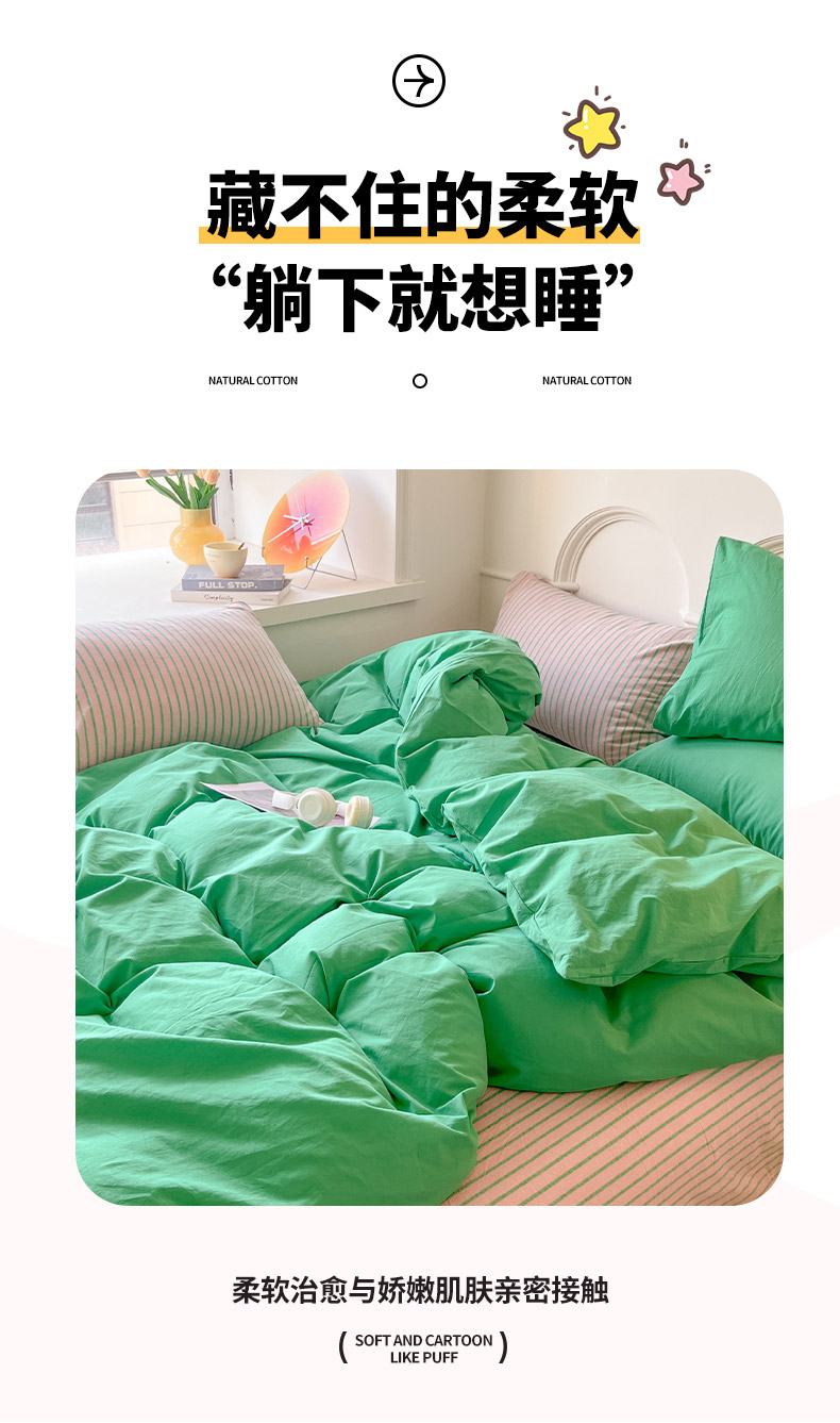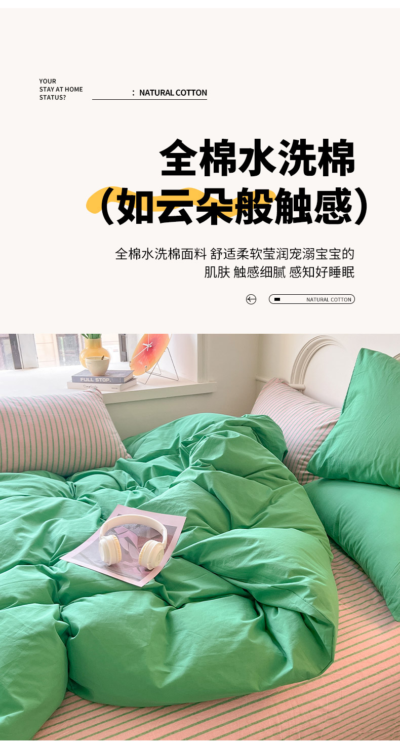 商品名称:千朵 2024新款ins风多巴胺撞色条纹全棉水洗棉四件套-可乐系列 可乐粉