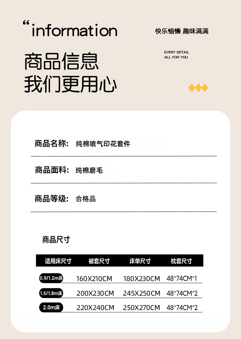 0.9m床笠三件套被套160*210 | ¥78.00 |