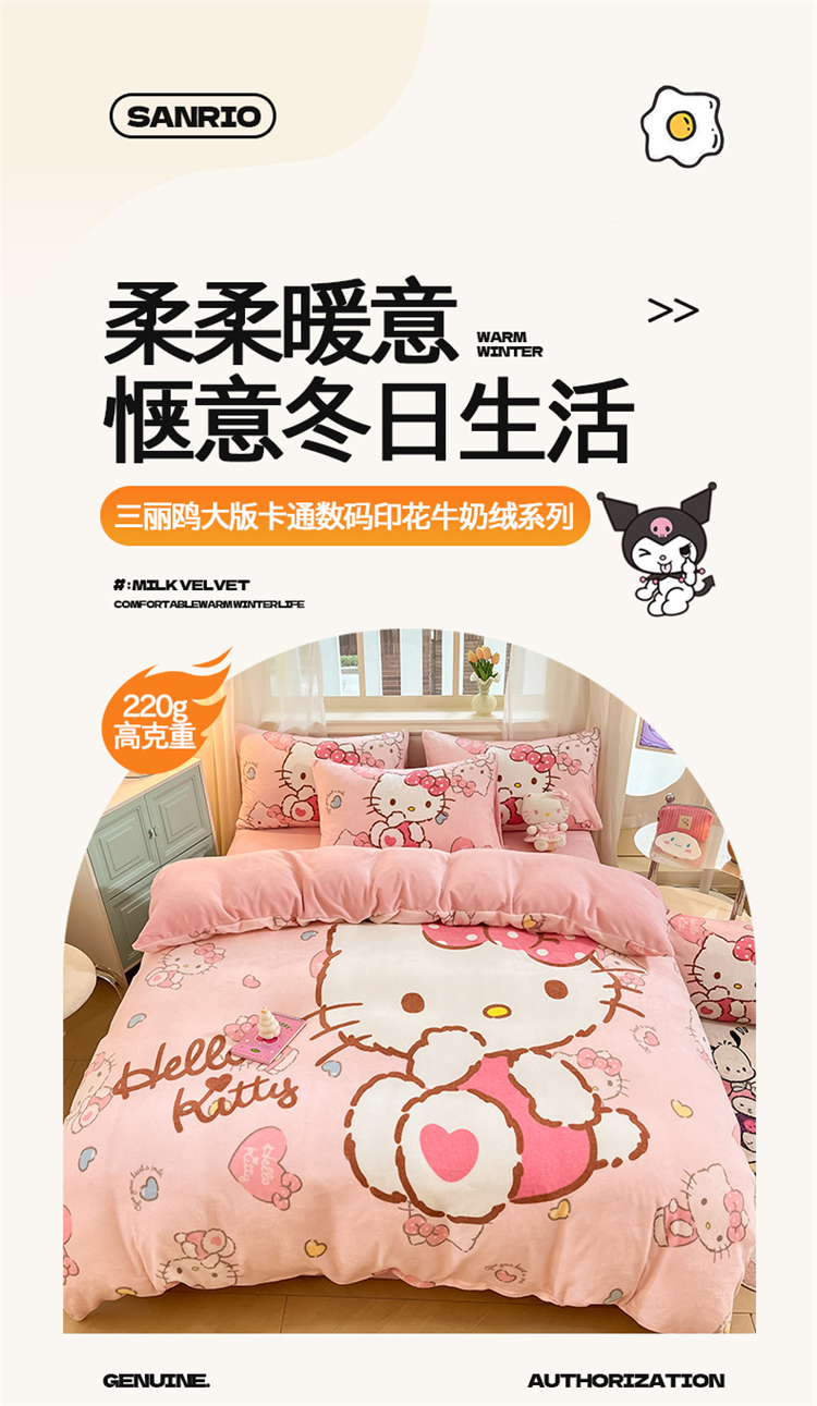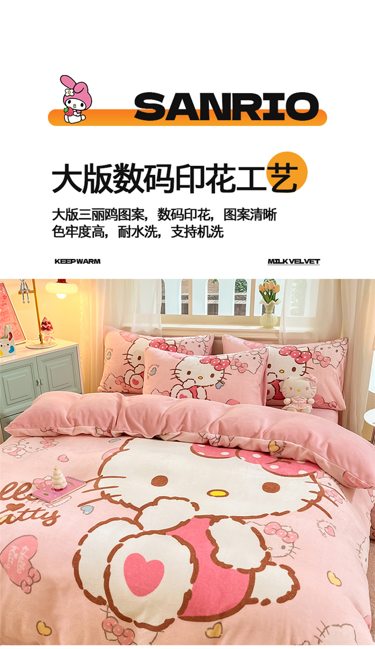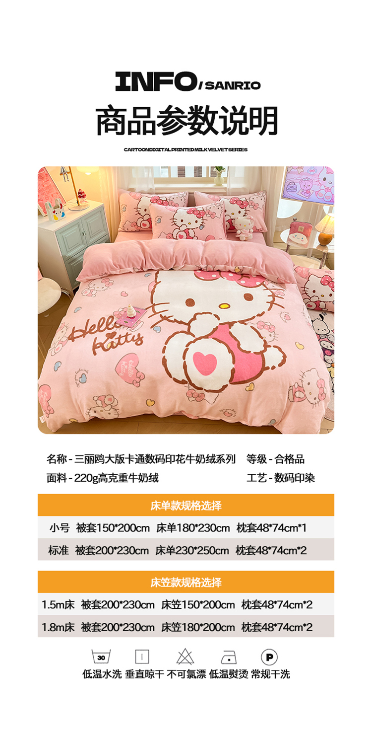 当前位置: 91家纺网 > 商品网购 > 床品套件 > 四件套 > 牛奶绒四件套 > 2024新品正版三丽鸥授权大版卡通平网数码印花加厚高克重牛奶绒系列四件套 绒大版-R粉梦kitty