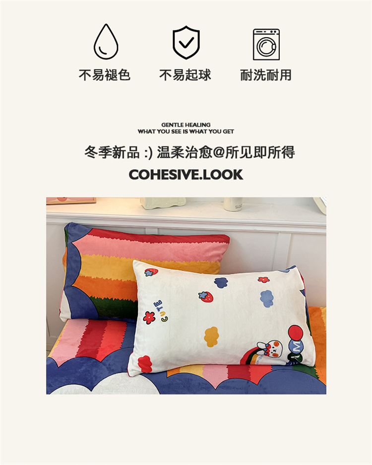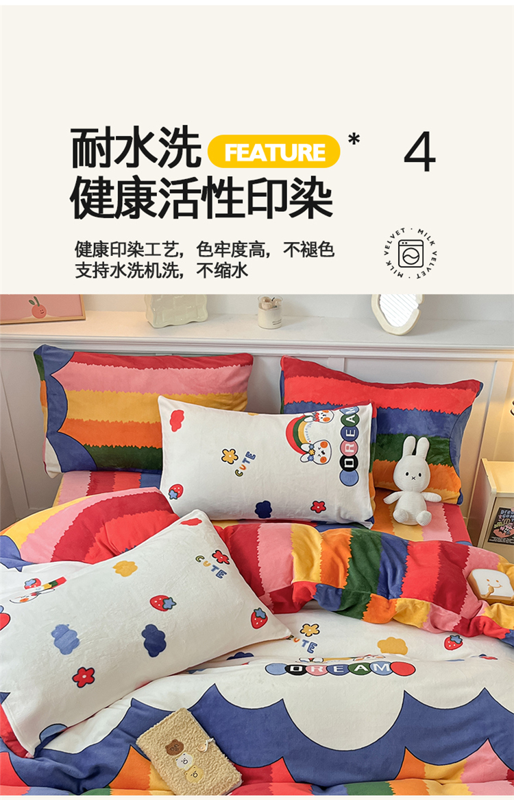 商品名称:2024新款200g加厚防静电牛奶绒小清新四件套 绒-彩虹兔