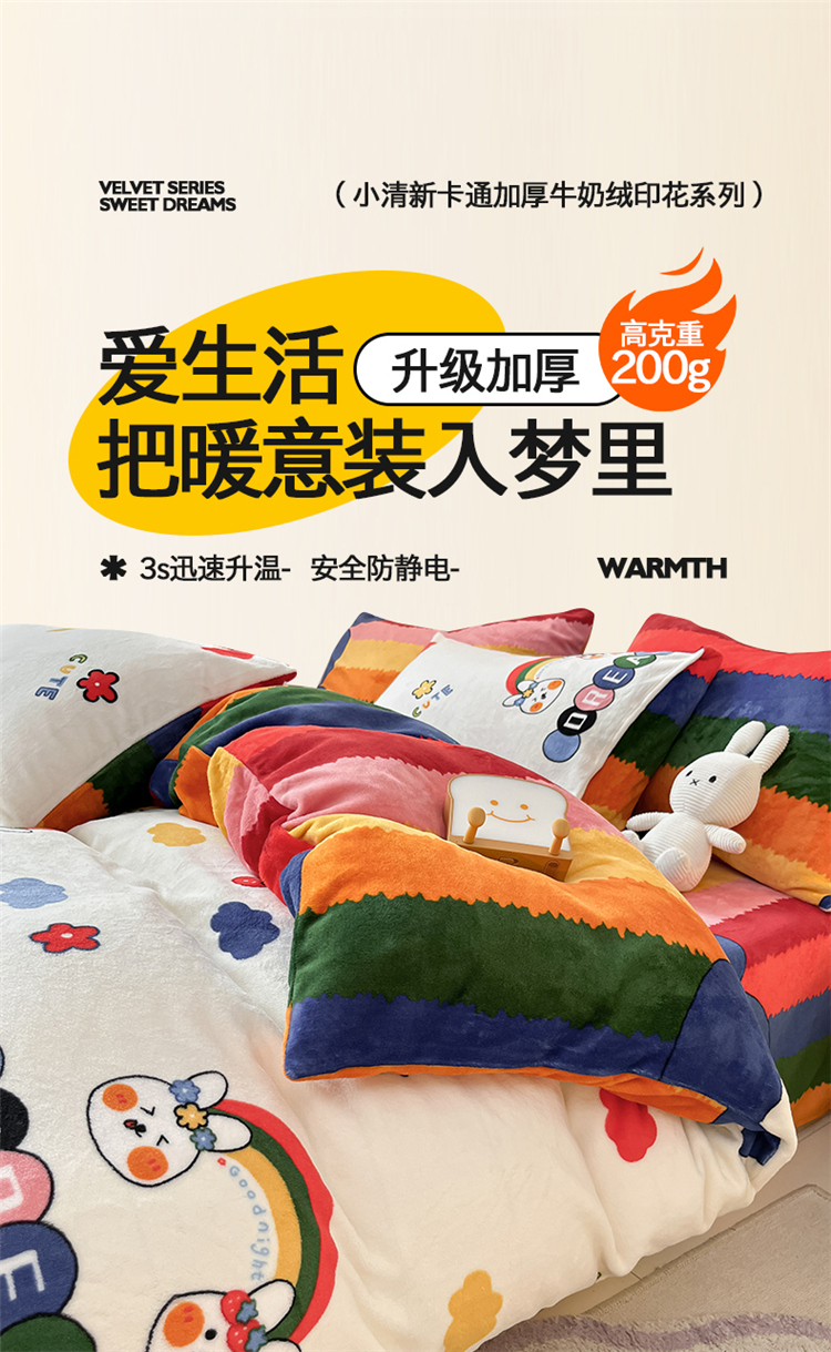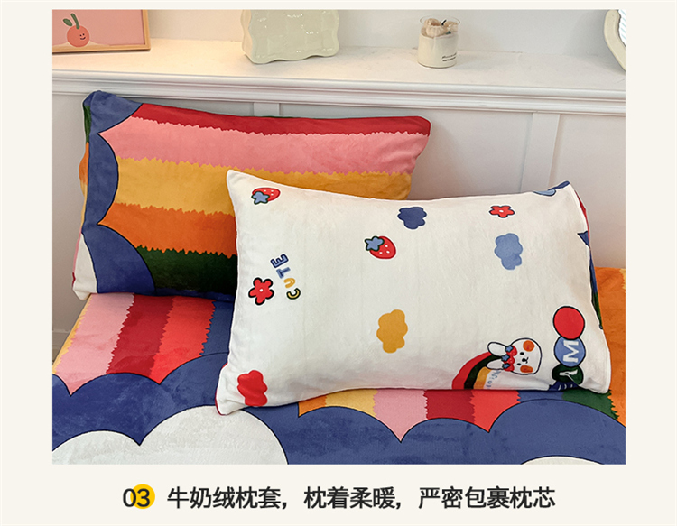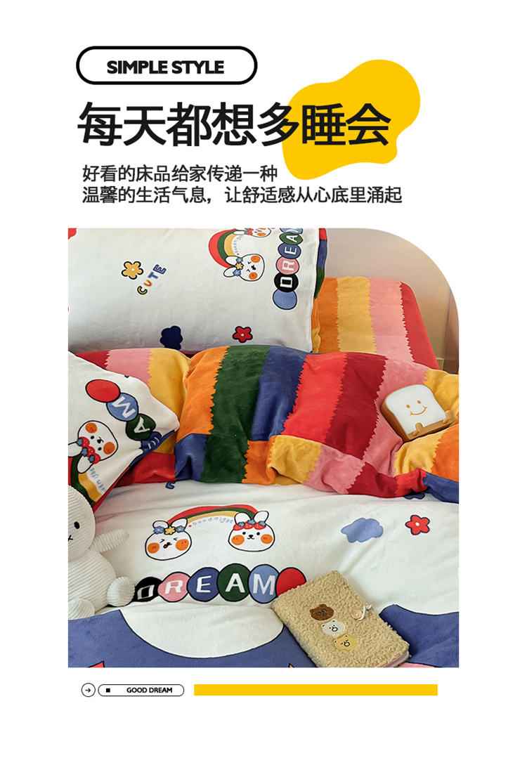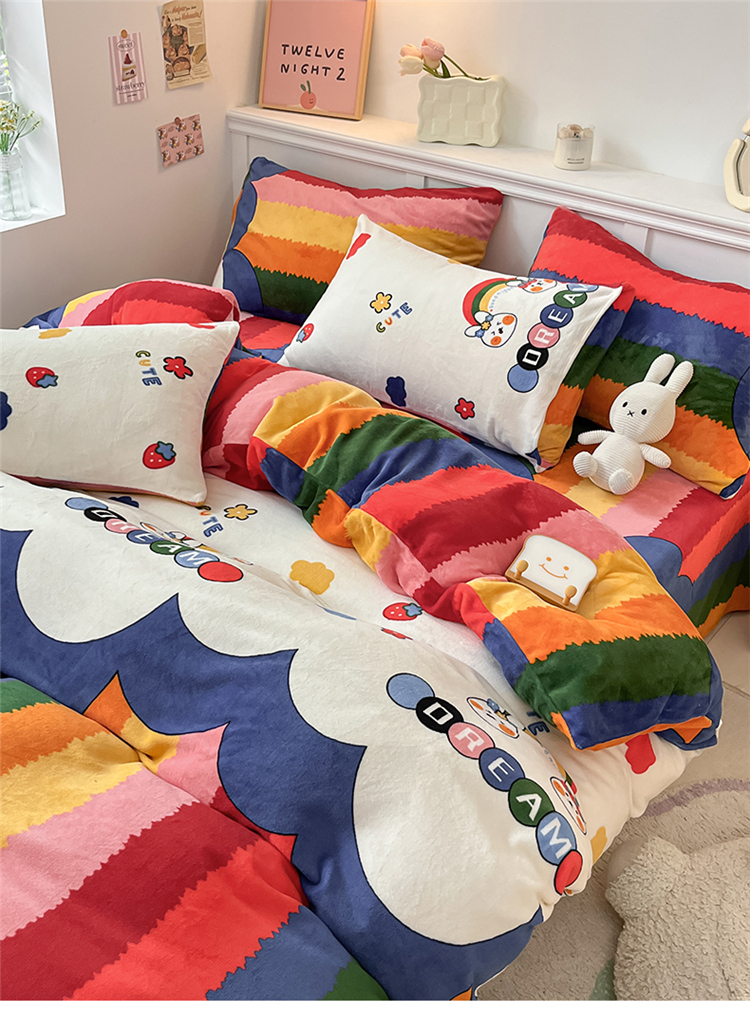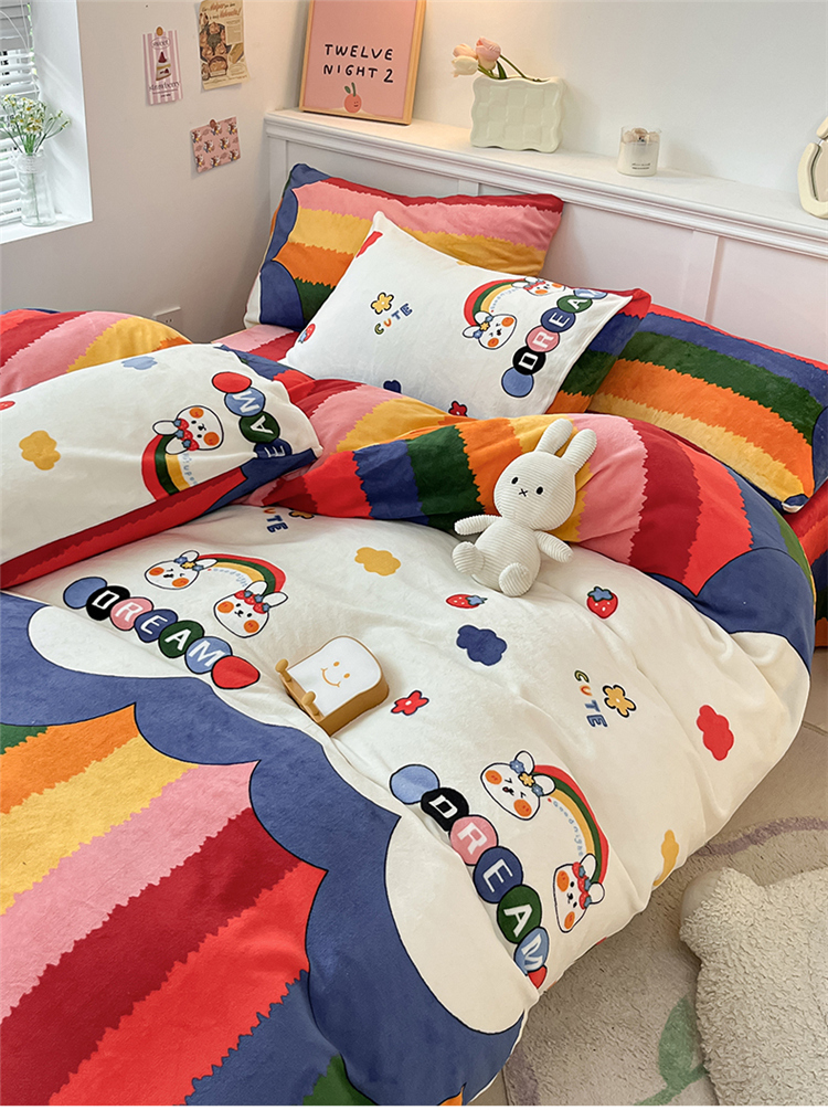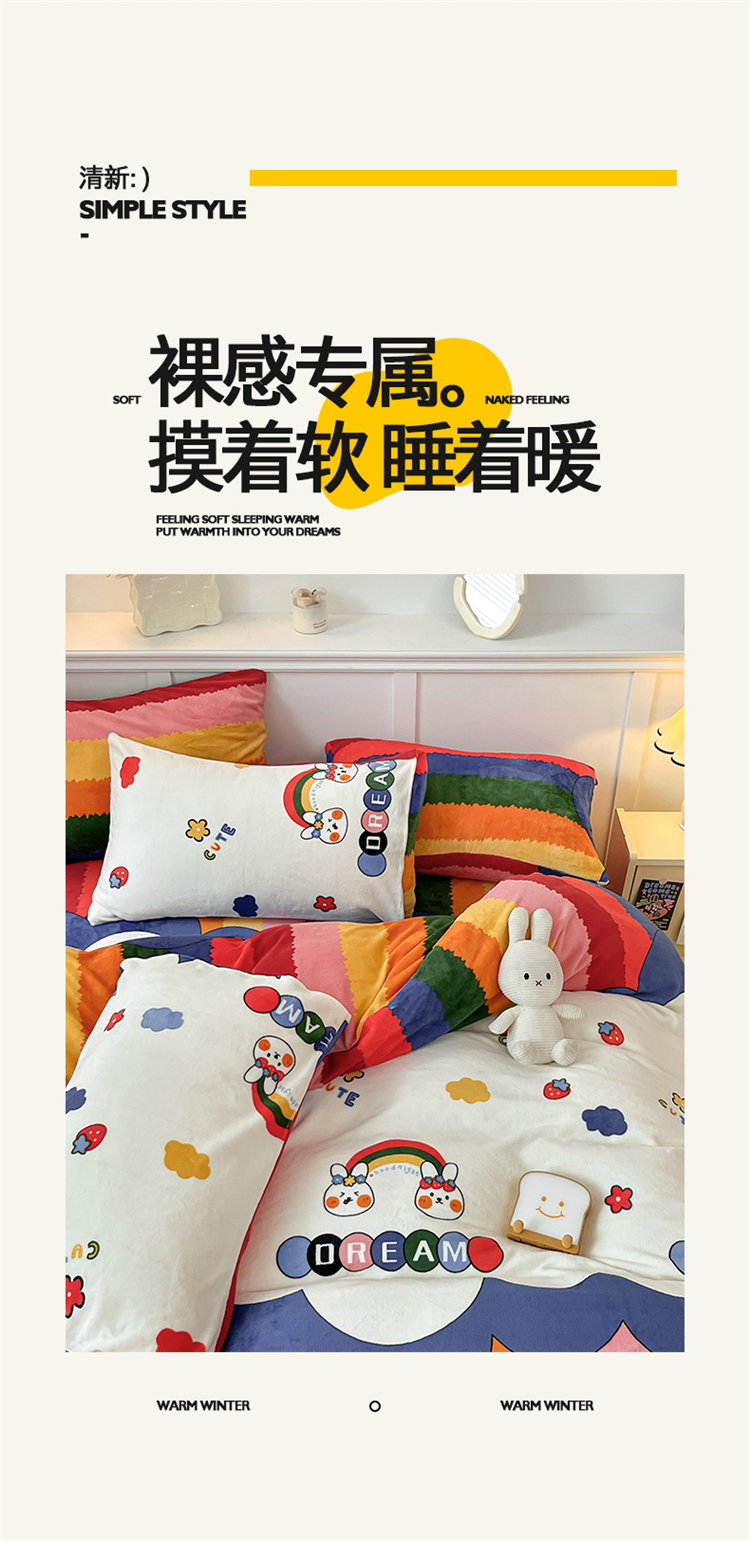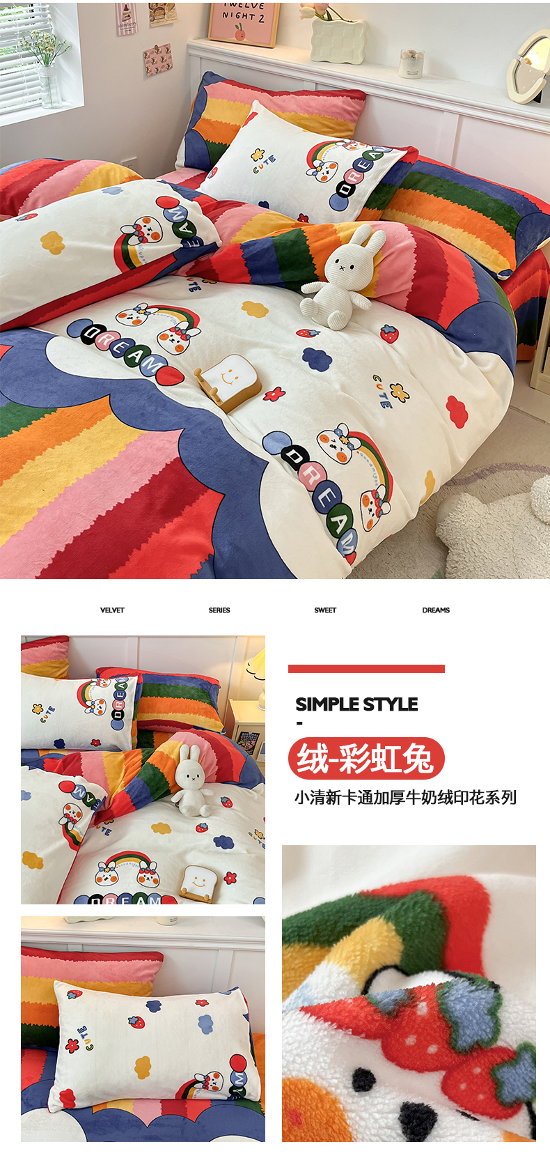 2024新款200g加厚防静电牛奶绒小清新四件套 绒-彩虹兔