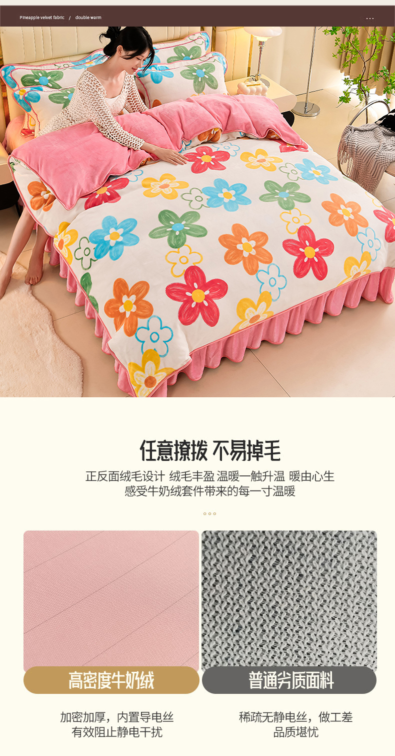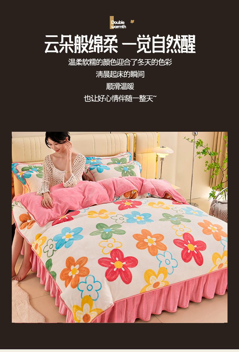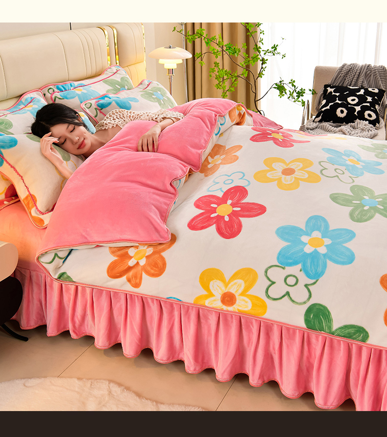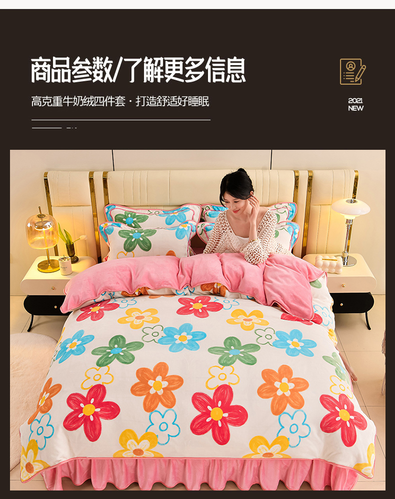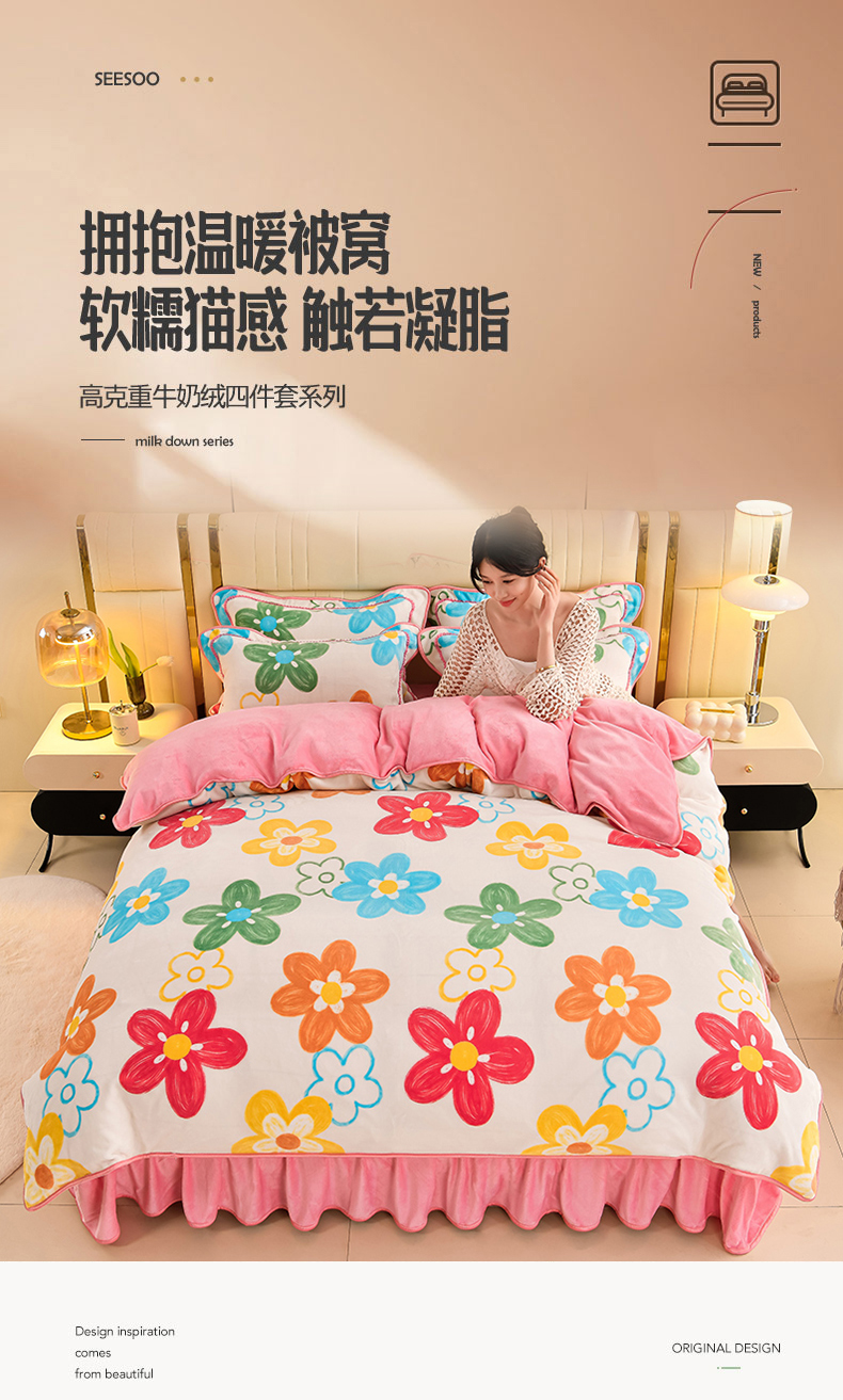 (总)沐妍家纺 2025新款7斤加厚保暖金貂绒牛奶绒印花四件套,爱的花海,爱情树,草莓熊,蝶恋,粉黛佳人,温暖时光,太空兔,芳华,蓝色格调,郁金香,小兔吉米粉