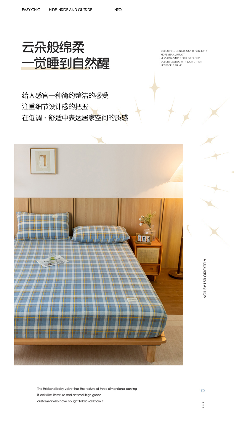 梵克保罗 2024新款纯色简约牛奶绒床笠 豆沙奶昔