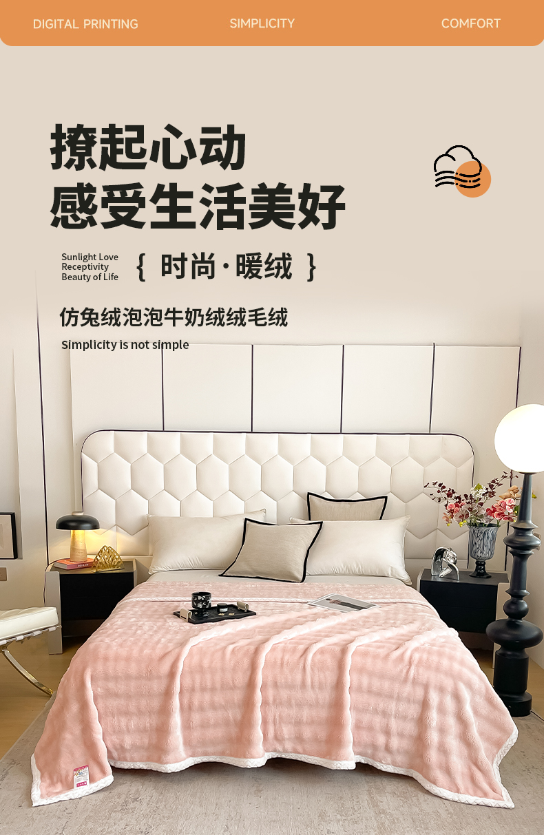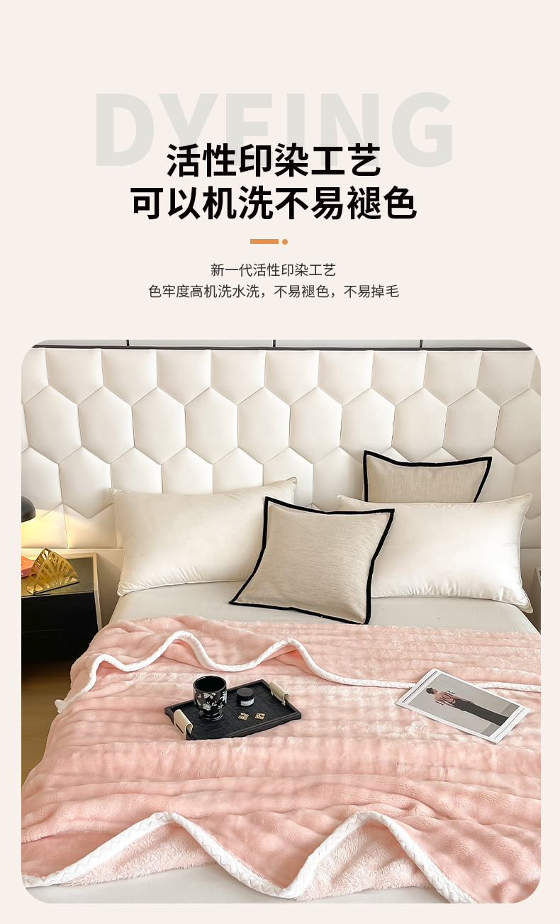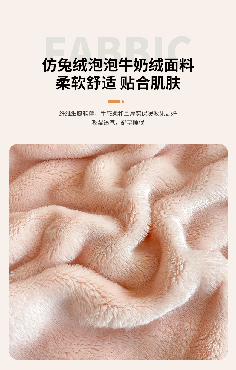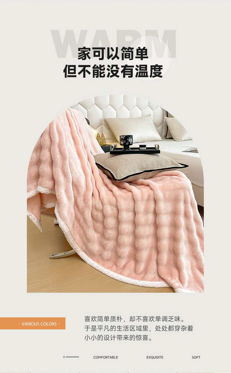 商品名称:梵克保罗 2024新款仿兔毛泡泡绒牛奶绒毛毯盖毯包边毛毯 粉色