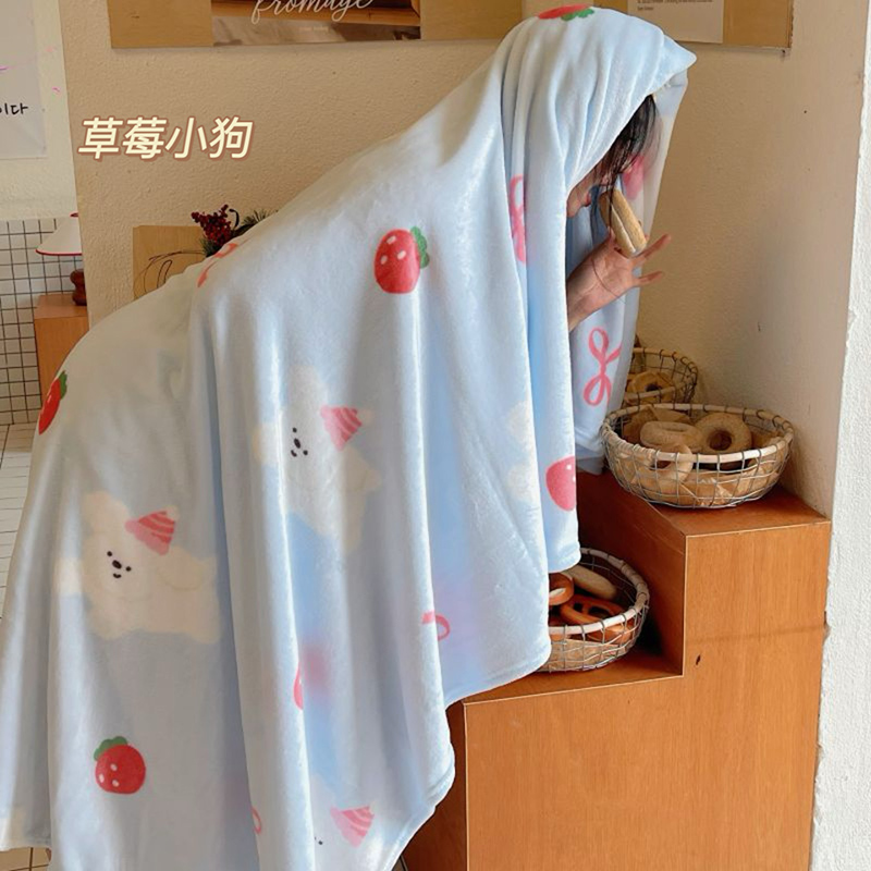 商品名称:2024新款亲肤舒适ins少女奶油治愈印花双面牛奶绒毯毛毯毯子 波点腊肠狗