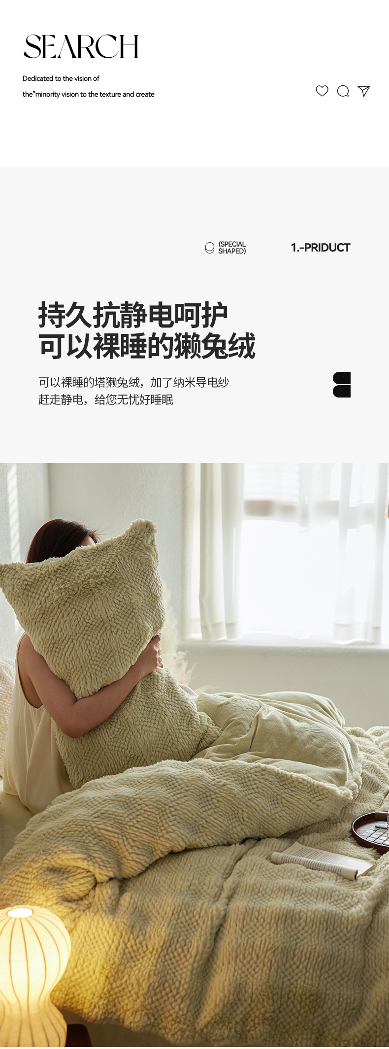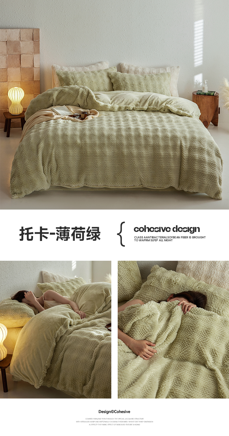 当前位置: 91家纺网 > 商品网购 > 床品套件 > 四件套 > 兔毛绒四件套 > 简纯主义 2025新款托卡獭兔绒四件套-风格二 托卡-薄荷绿