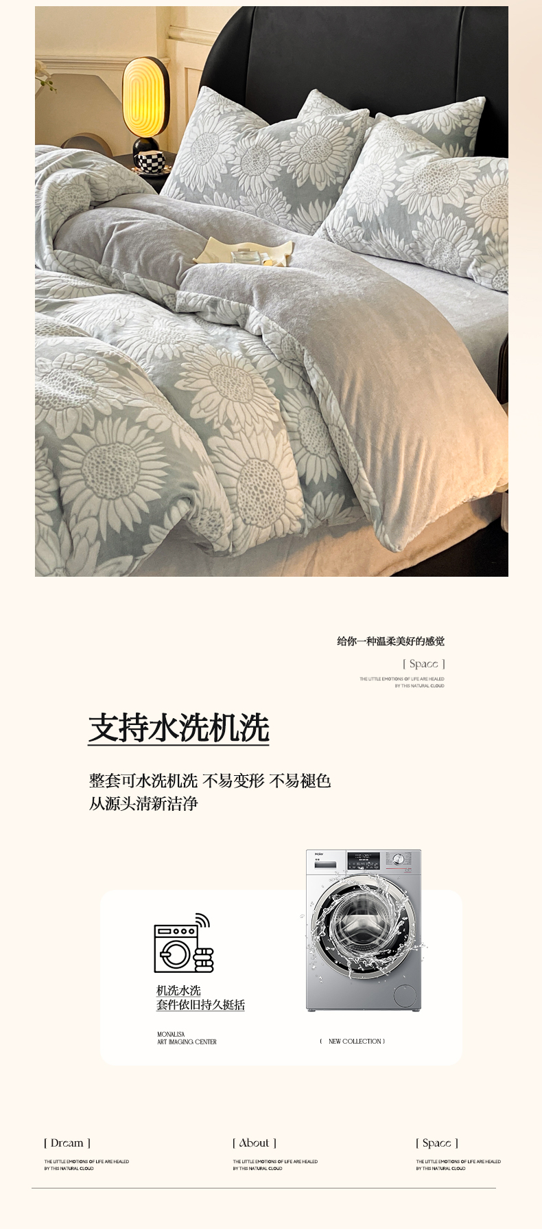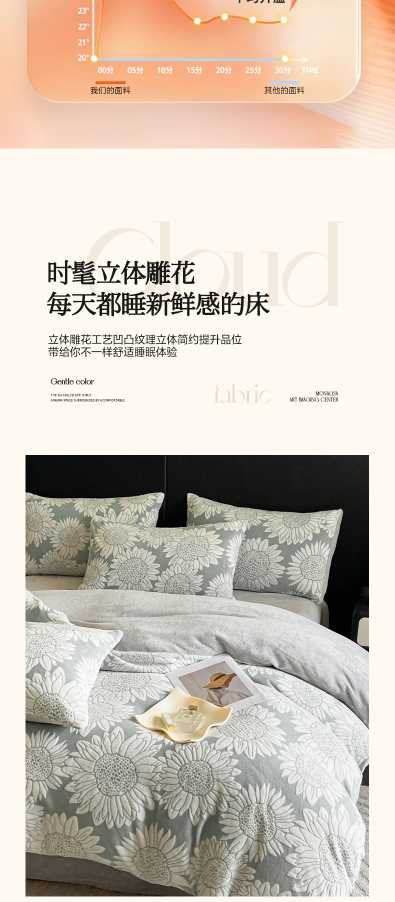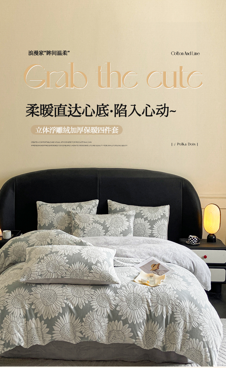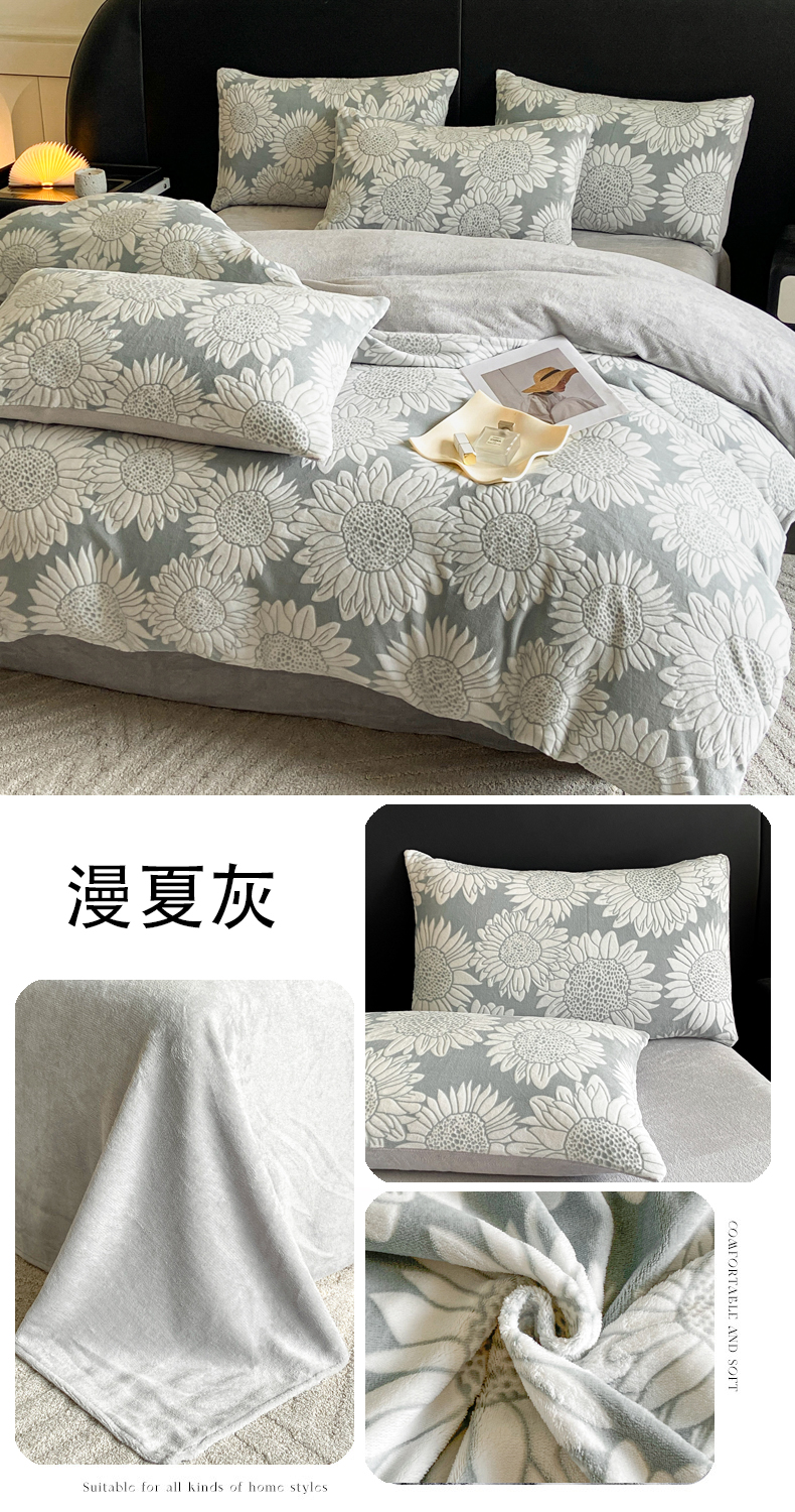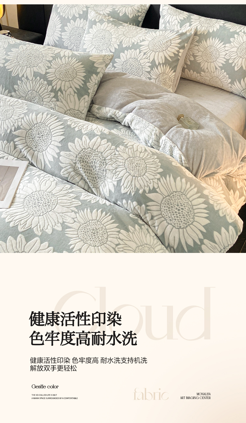 2024新款立体浮雕保暖加厚牛奶绒四件套 漫夏灰