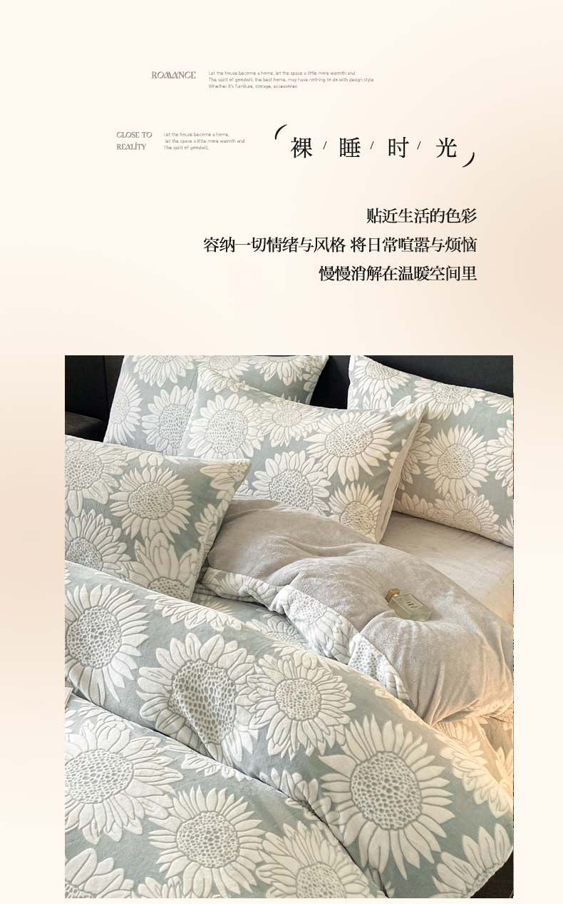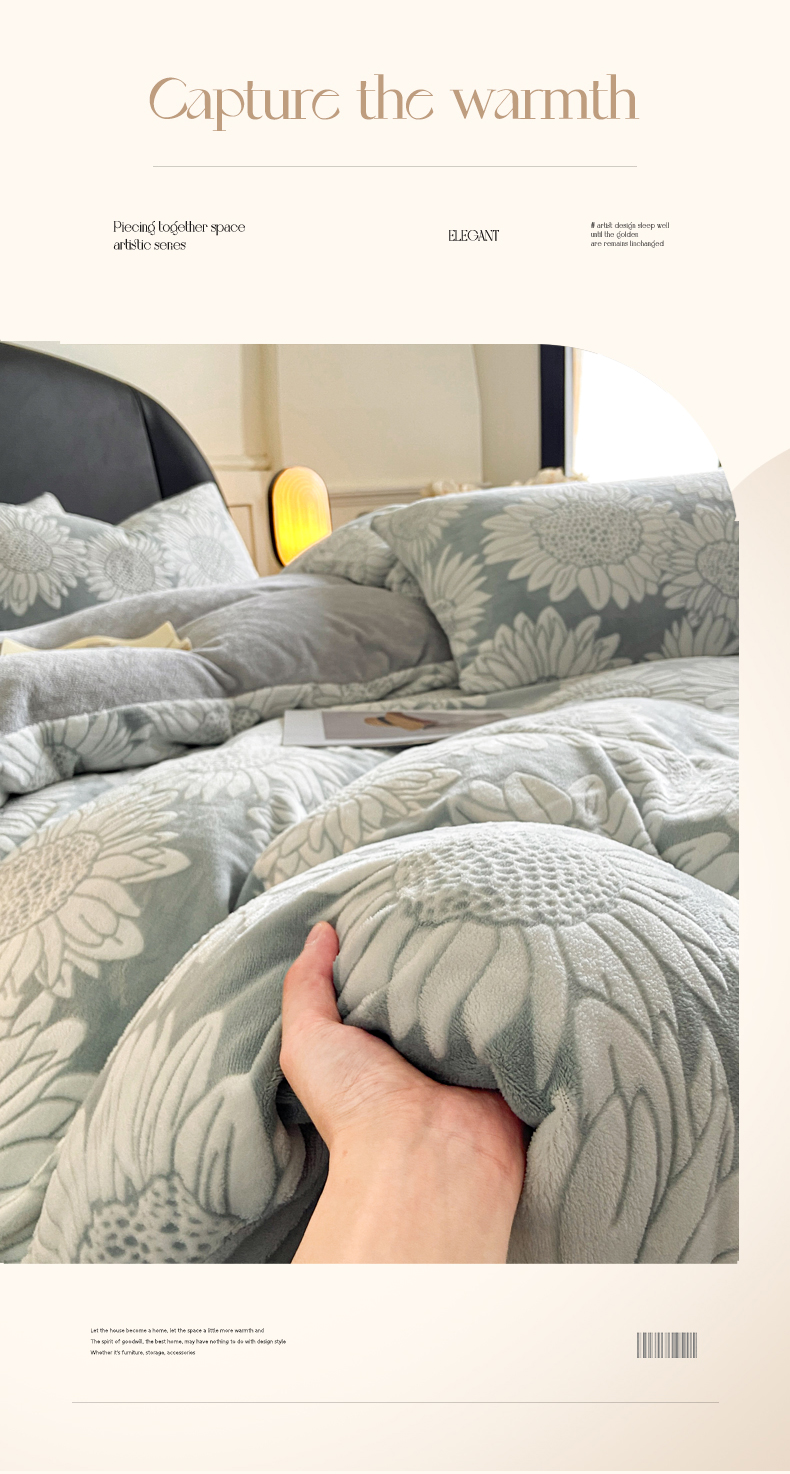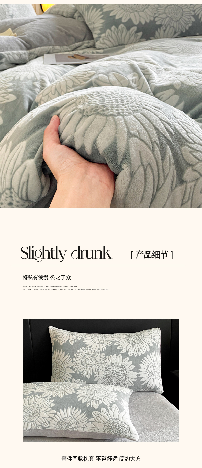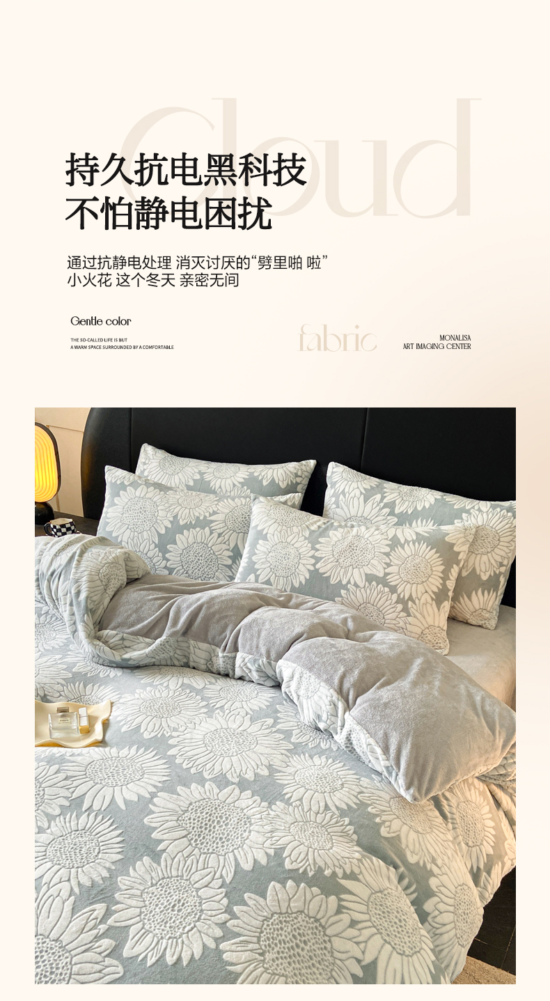 2024新款立体浮雕保暖加厚牛奶绒四件套 漫夏灰