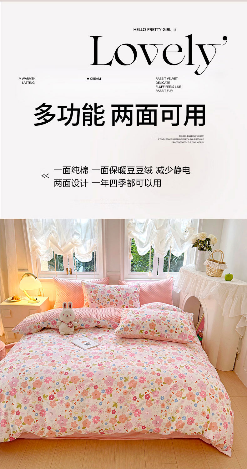 当前位置: 91家纺网 > 商品网购 > 床品套件 > 四件套 > 其它四件套 > 优迈2024新秋冬加厚保暖全棉+豆豆绒四件套婴儿绒牛奶绒豆豆单被套单人双人加大号棉加绒三件套四件套 粉色浪漫