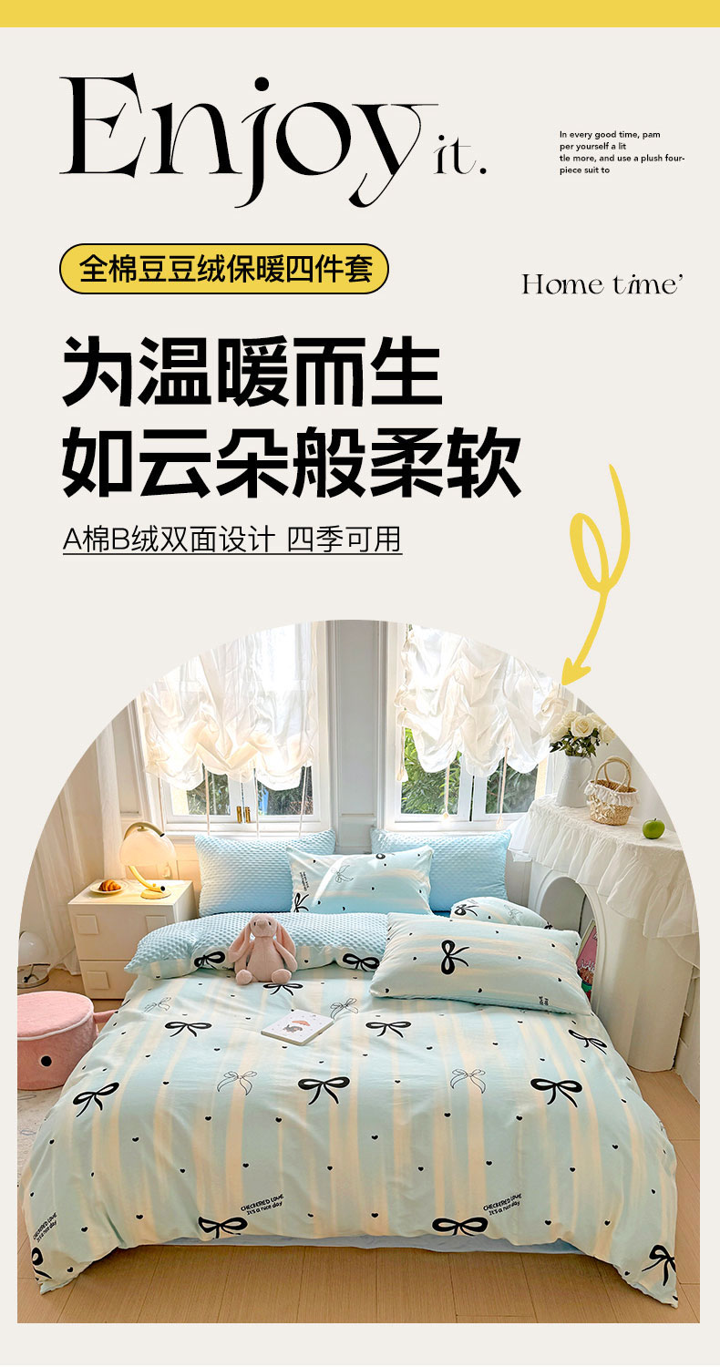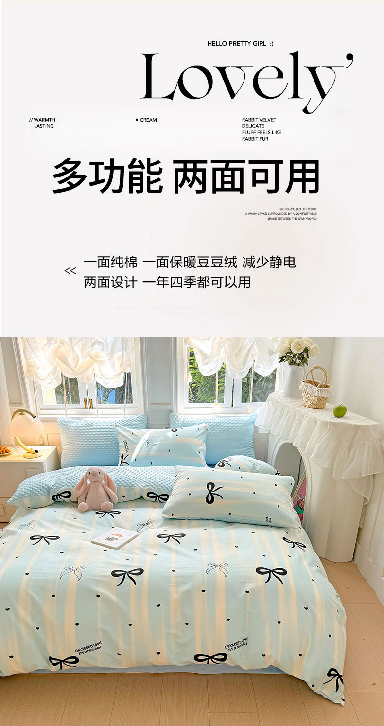 当前位置: 91家纺网 > 商品网购 > 床品套件 > 四件套 > 其它四件套 > 优迈2024新秋冬加厚保暖全棉+豆豆绒四件套婴儿绒牛奶绒豆豆单被套单人双人加大号棉加绒三件套四件套 美丽蝴蝶结