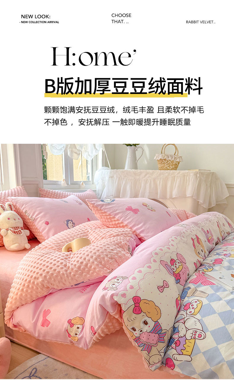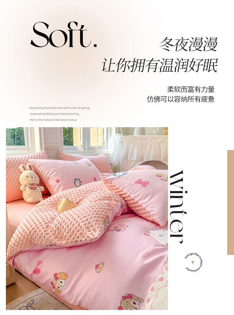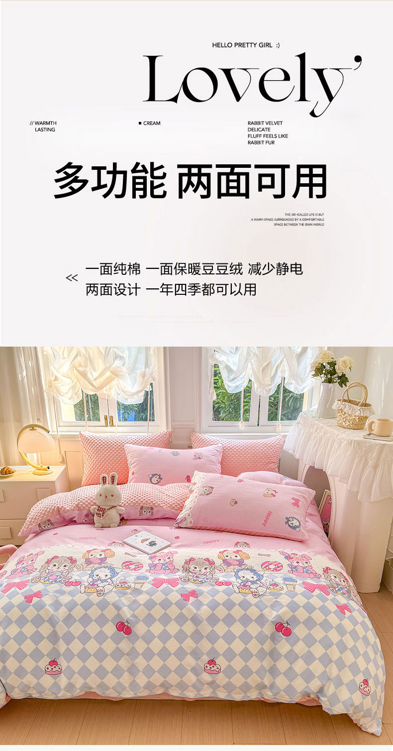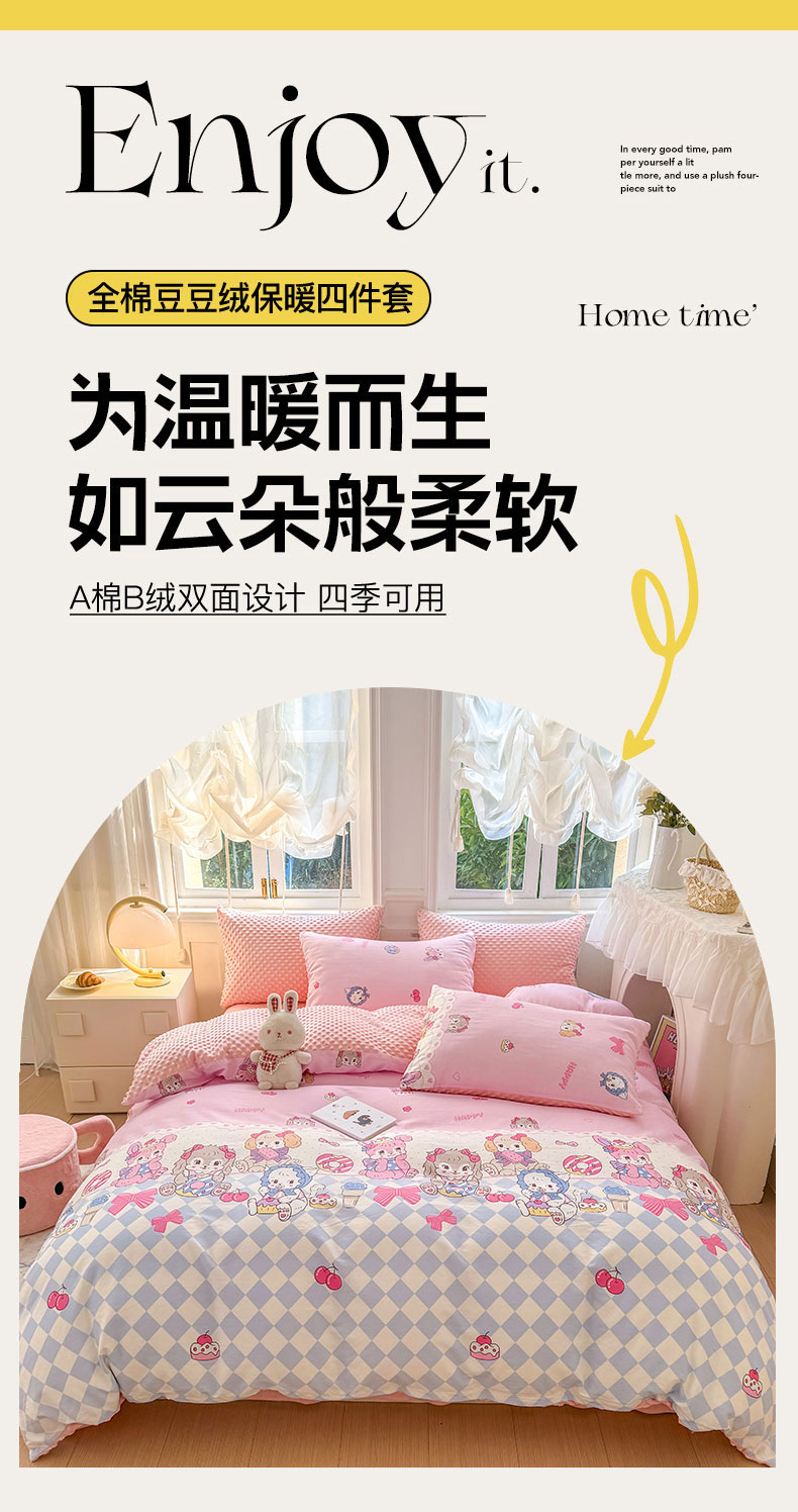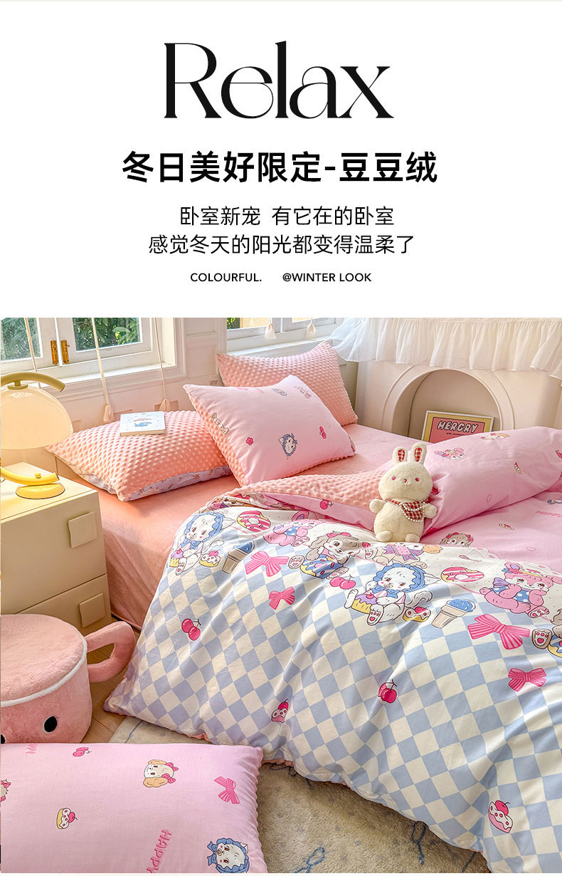 当前位置: 91家纺网 > 商品网购 > 床品套件 > 四件套 > 其它四件套 > 优迈2024新秋冬加厚保暖全棉+豆豆绒四件套婴儿绒牛奶绒豆豆单被套单人双人加大号棉加绒三件套四件套 甜心派对