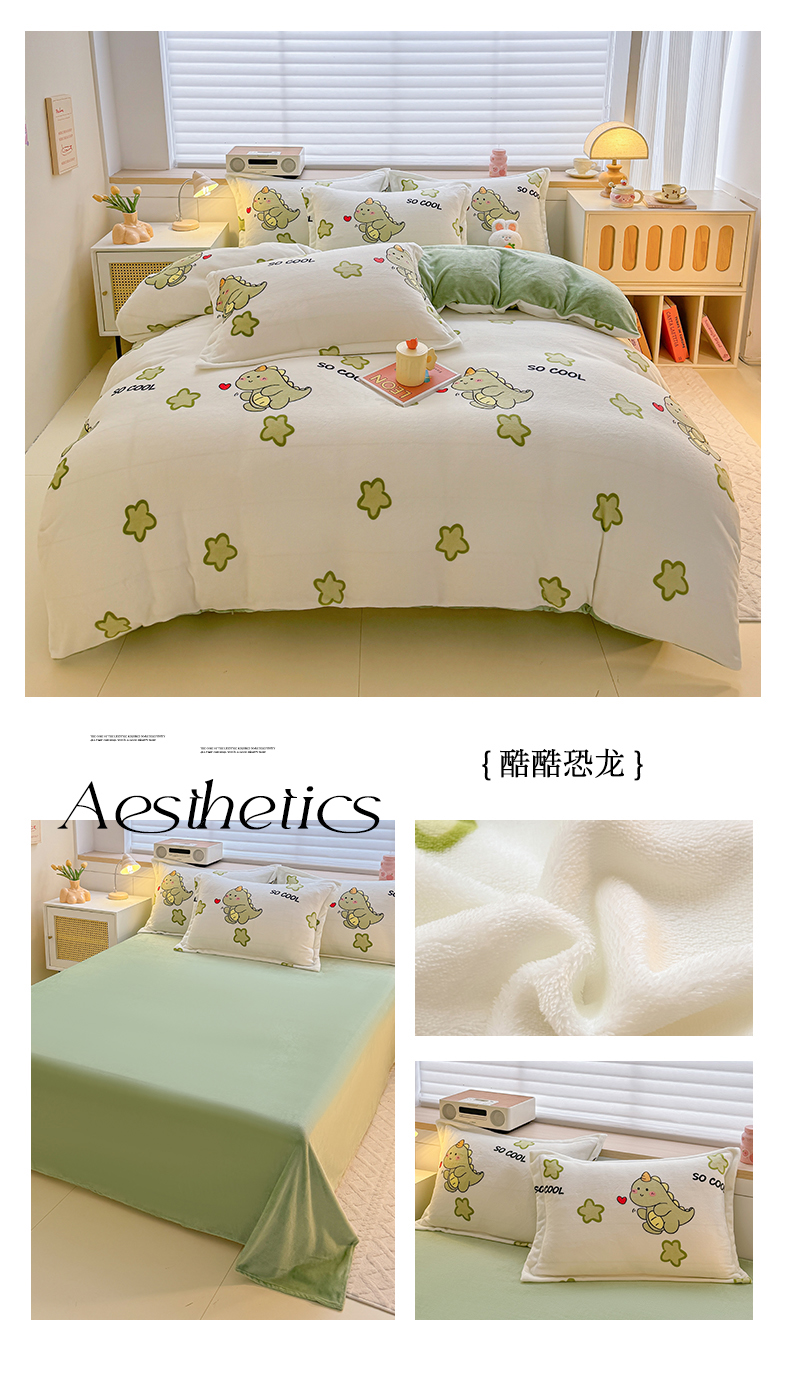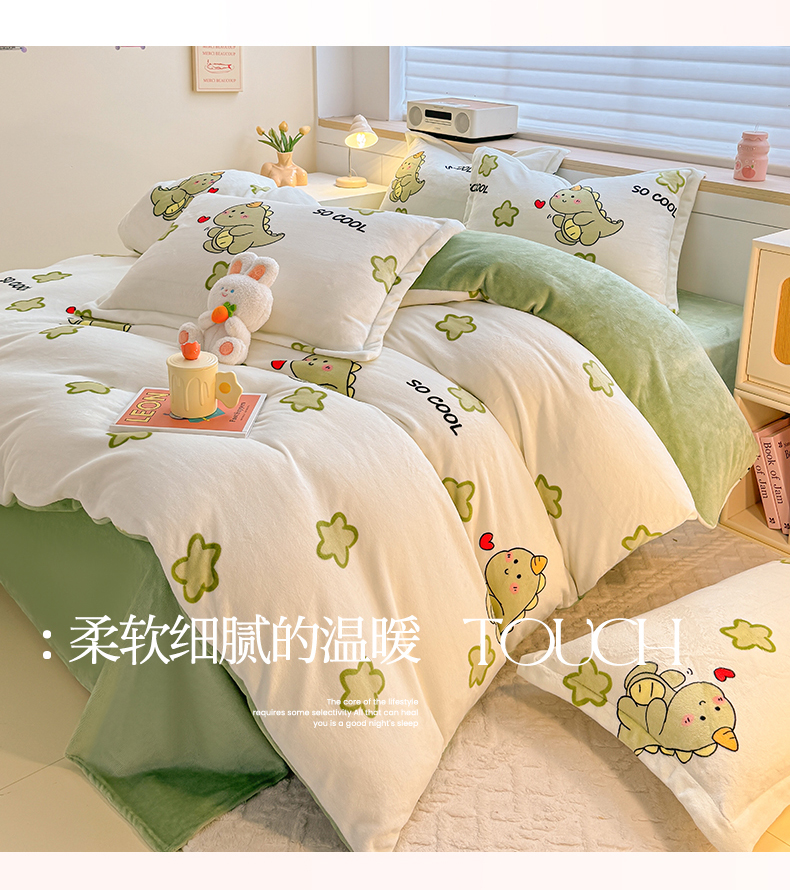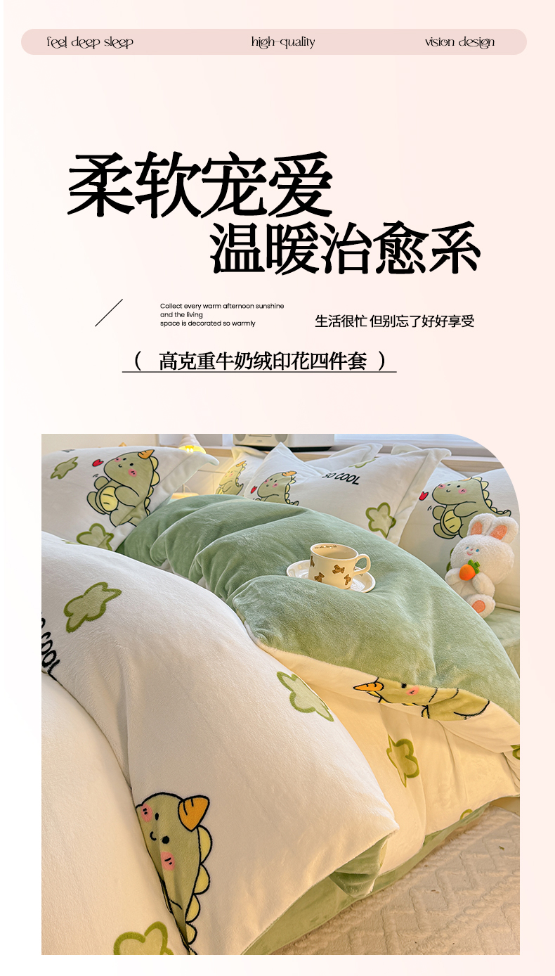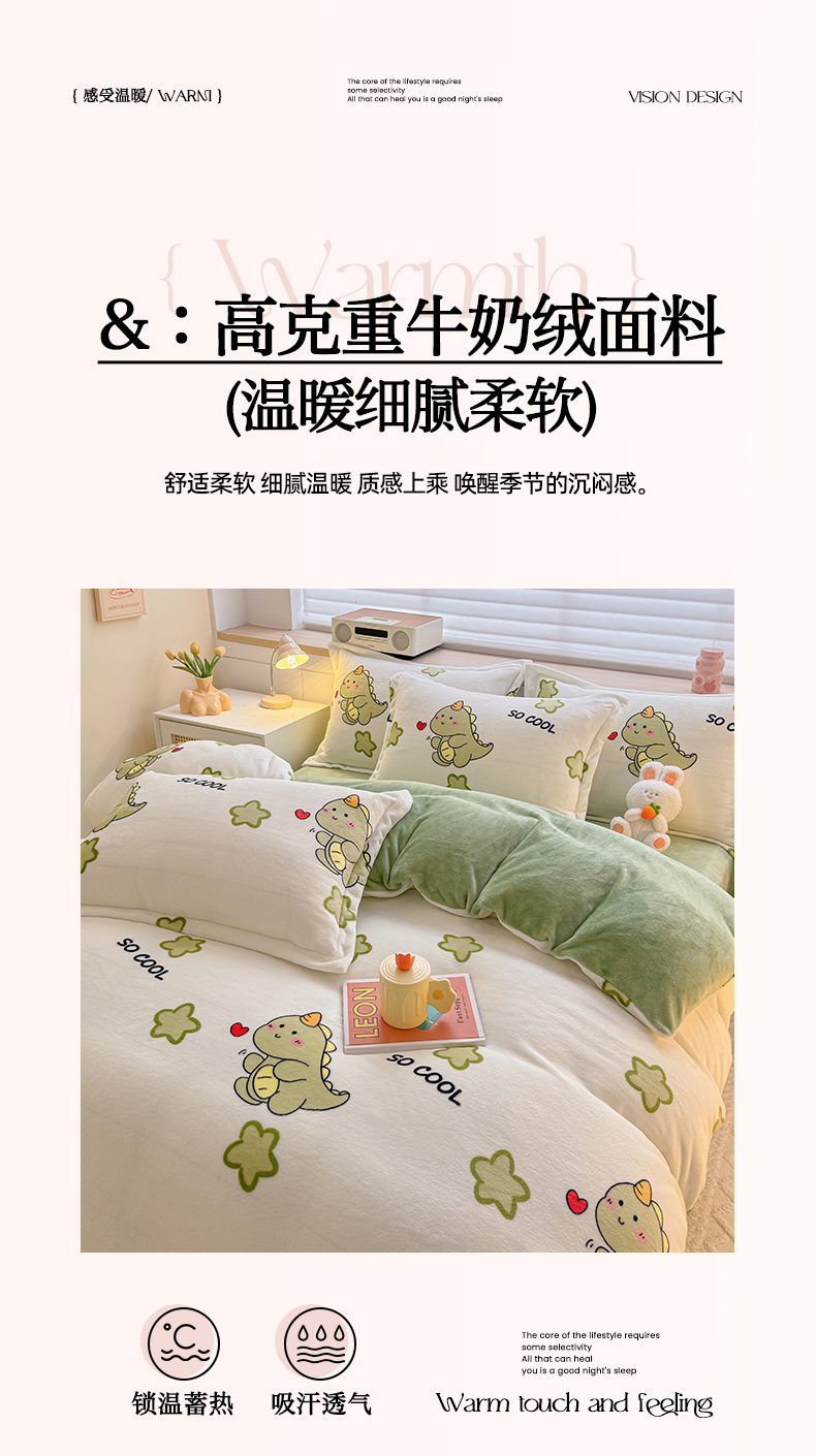 当前位置: 91家纺网 > 商品网购 > 床品套件 > 四件套 > 牛奶绒四件套 > 妖妖家纺 2024新款高克重200克印花牛奶绒四件套 酷酷恐龙