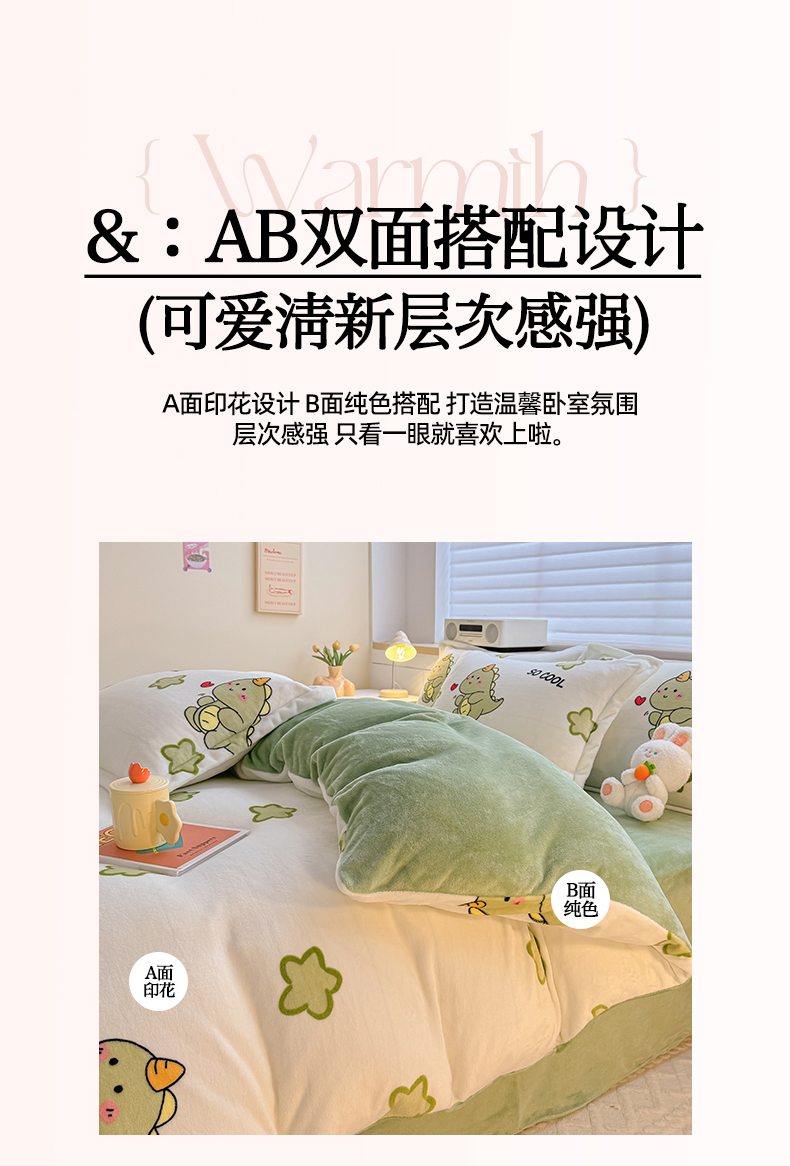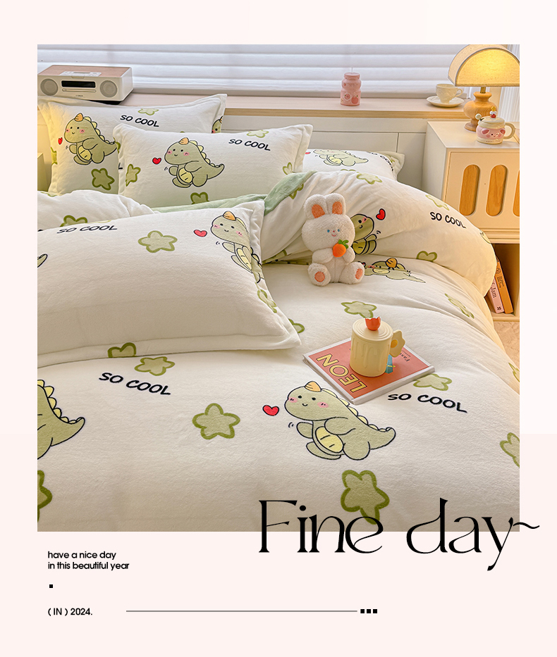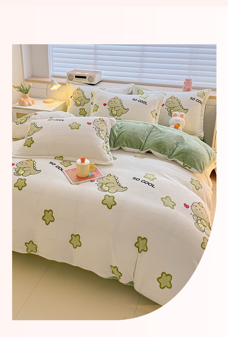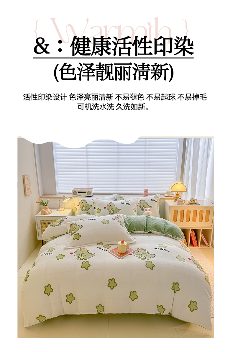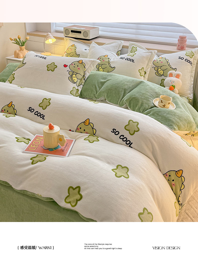 当前位置: 91家纺网 > 商品网购 > 床品套件 > 四件套 > 牛奶绒四件套 > 妖妖家纺 2024新款高克重200克印花牛奶绒四件套 酷酷恐龙