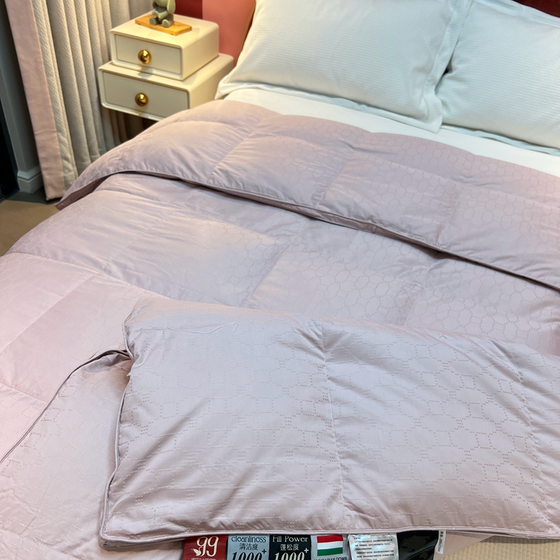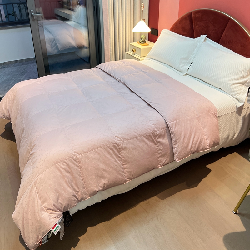 (总)静若居 2025新款高端提花羽绒被鸭绒被贡缎提花单层羽绒被壳,飘颜粉,飘金色,飘高级灰