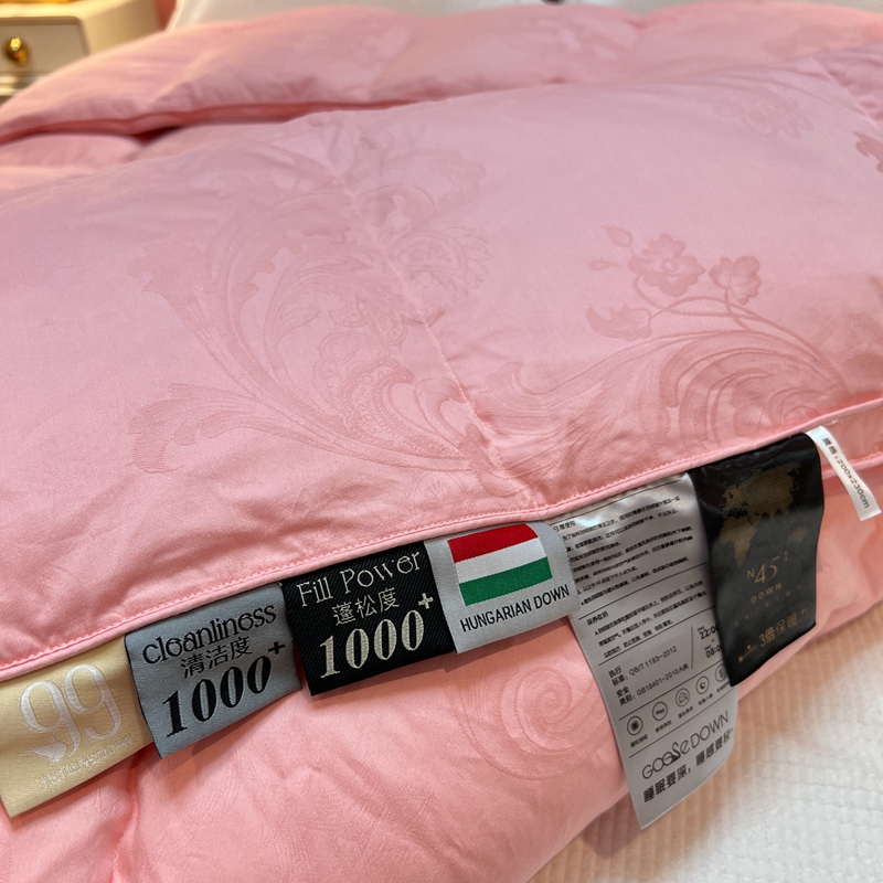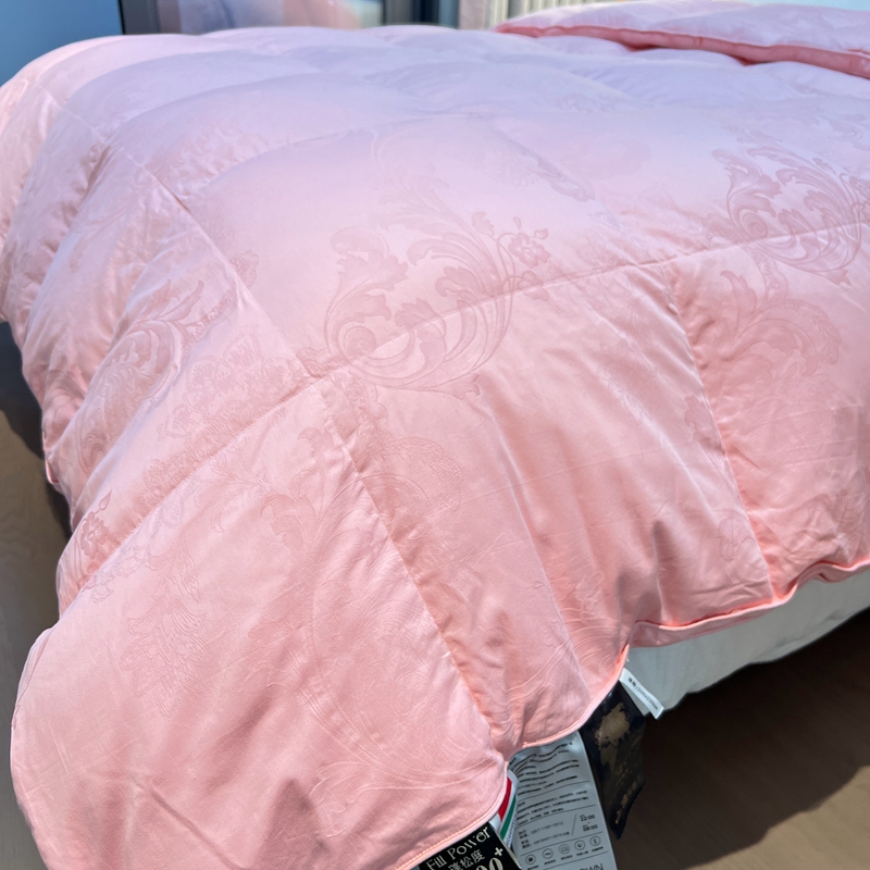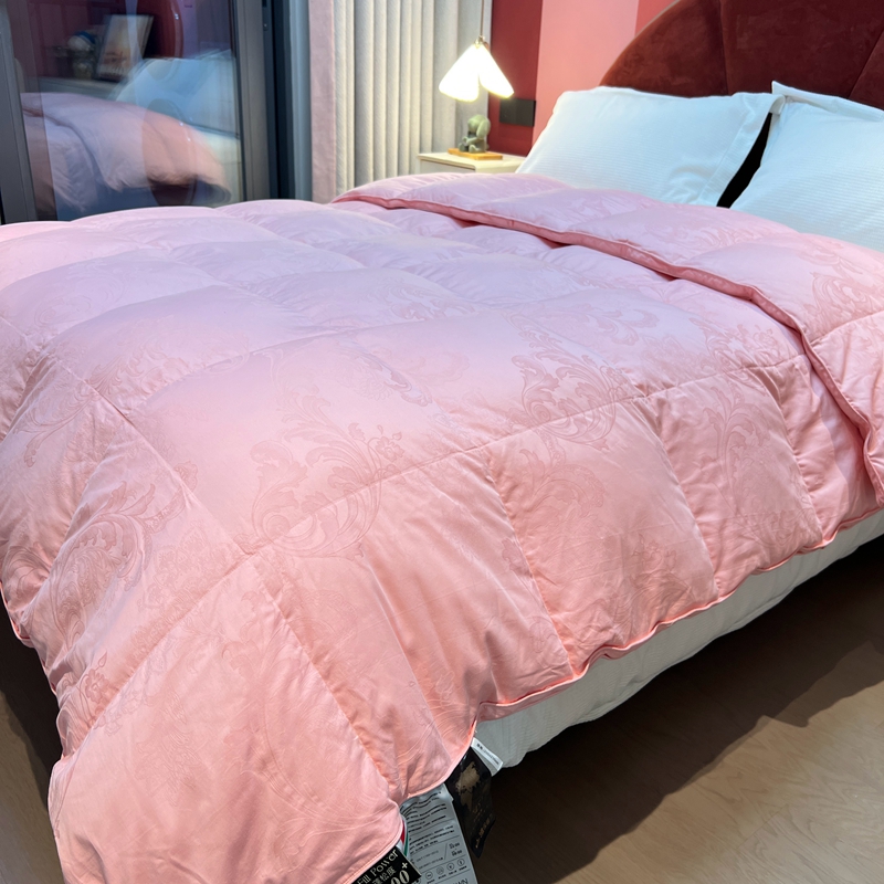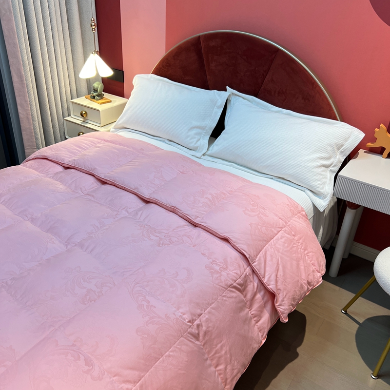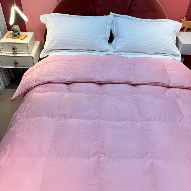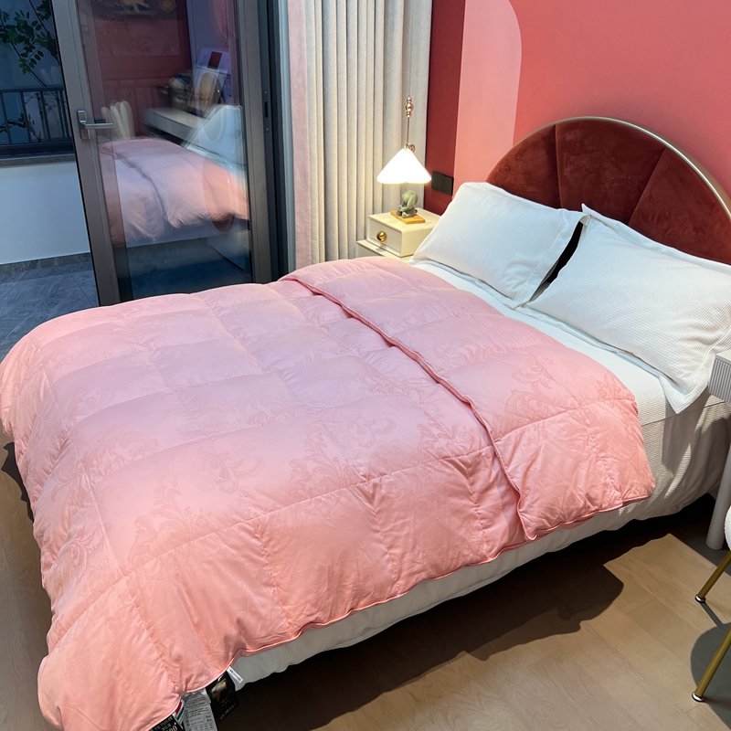 商品名称:静若居 2024新款双层大提花羽绒被壳不跑绒自充绒羽绒被壳厂家直销 双层凤尾粉色2