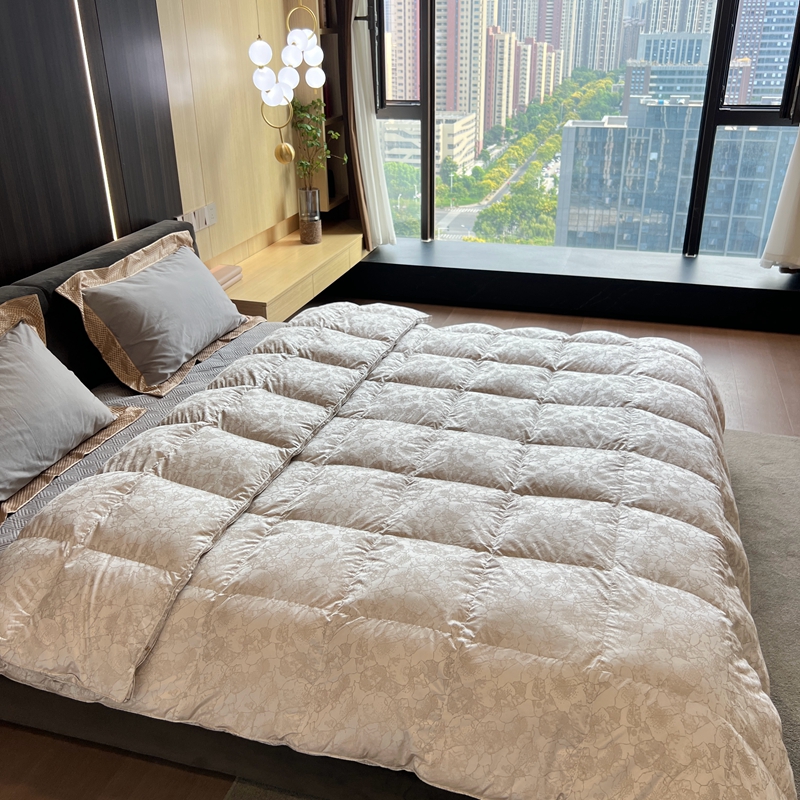 (总)静若居 2025新款高端提花羽绒被鸭绒被贡缎提花单层羽绒被壳,飘颜粉,飘金色,飘高级灰