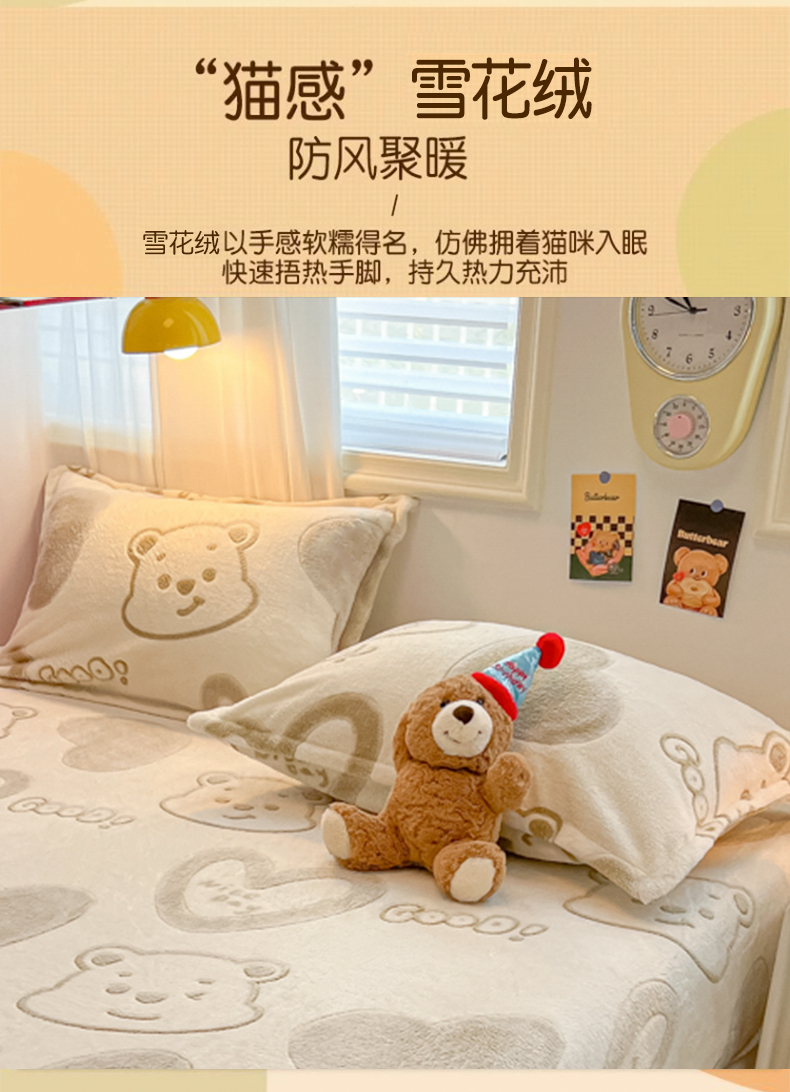 (总)韩巢家纺 2025新款高克重雪花绒牛奶绒四件套系列,郁金香,爱心熊(绿),巴丽娜,大白鹅,大耳朵兔,蝶雅,花花世界,灰色轨迹,米菲,七彩,田园兔(黄),小怪兽,幸运兔,英伦熊