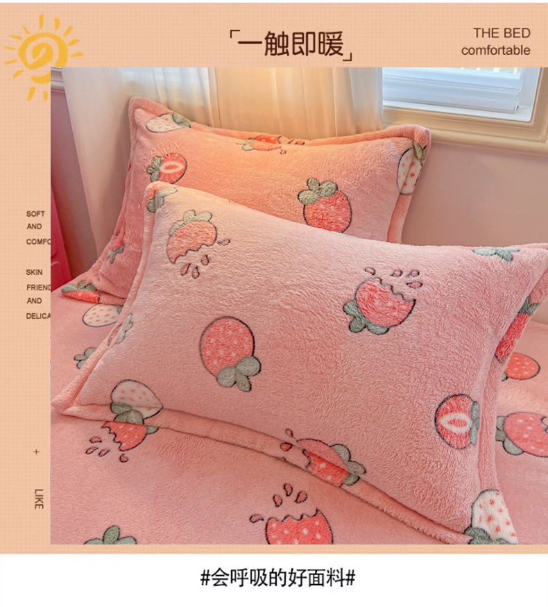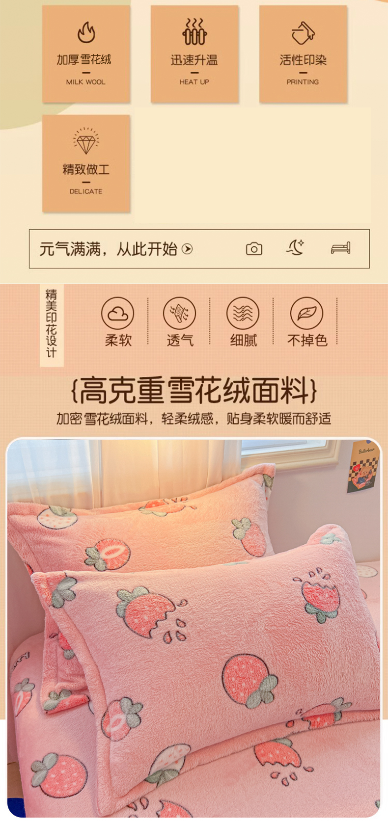 韩巢家纺 2024新款雪花绒枕套一对装 奶油草莓