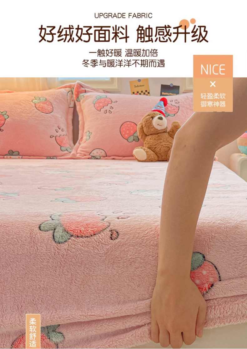 韩巢家纺 2025新款高克重印花牛奶绒床品四件套 爱心小樱桃,爱心小樱桃
