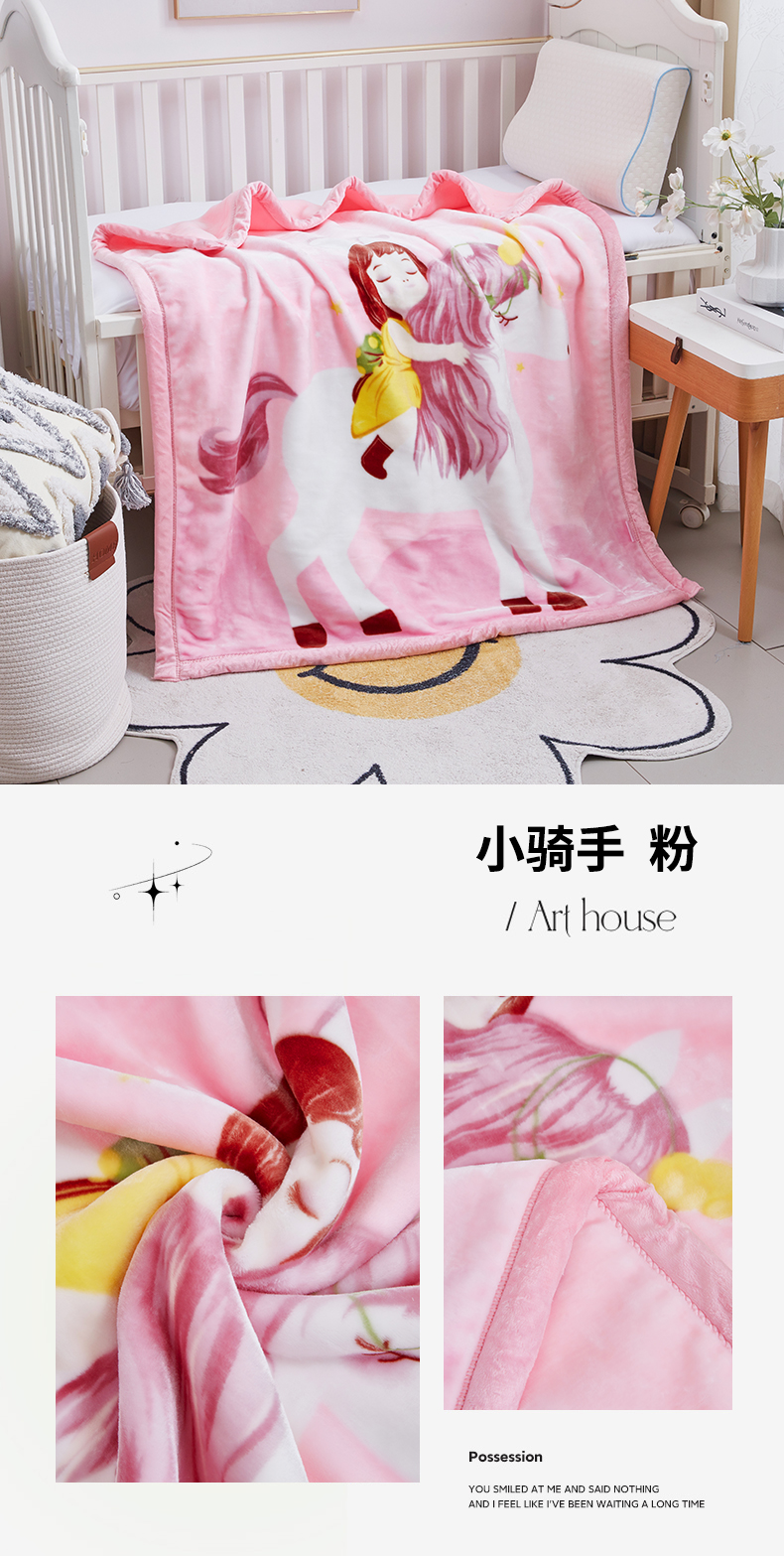 凯轩毛毛毯毯子网销专供 2024新款加厚保暖儿童印花云毛毯毯子系列 小骑手 粉