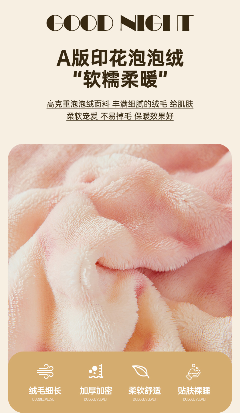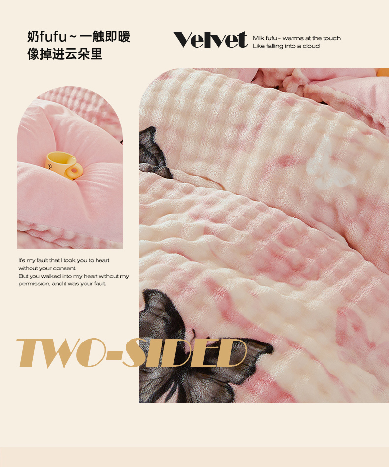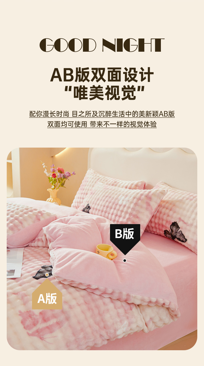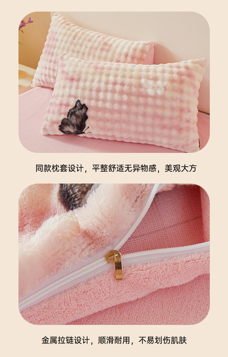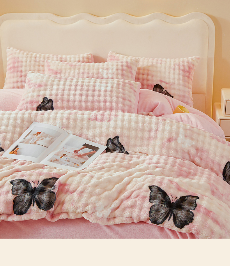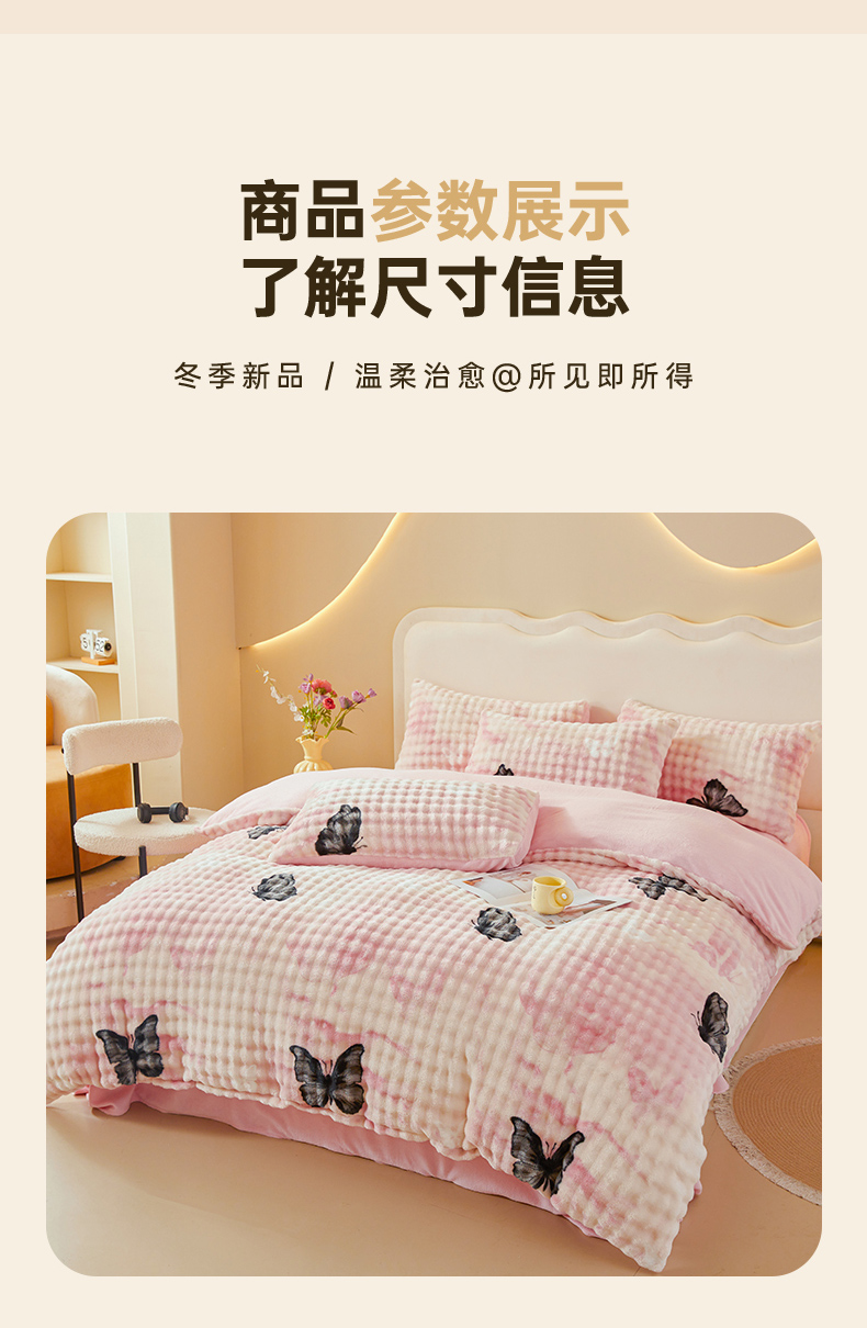 当前位置: 91家纺网 > 商品网购 > 床品套件 > 四件套 > 牛奶绒四件套 > 巧格家纺 2025新款A类加厚泡泡牛奶绒印花工艺立体泡泡四件套(买家秀联系商家) 蝶追花