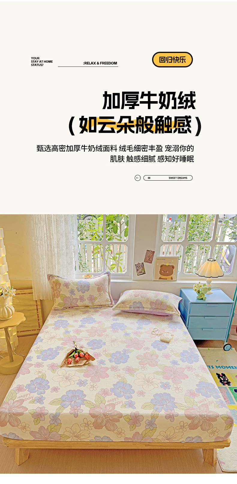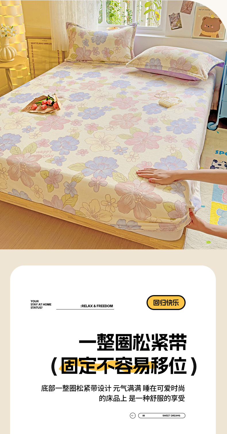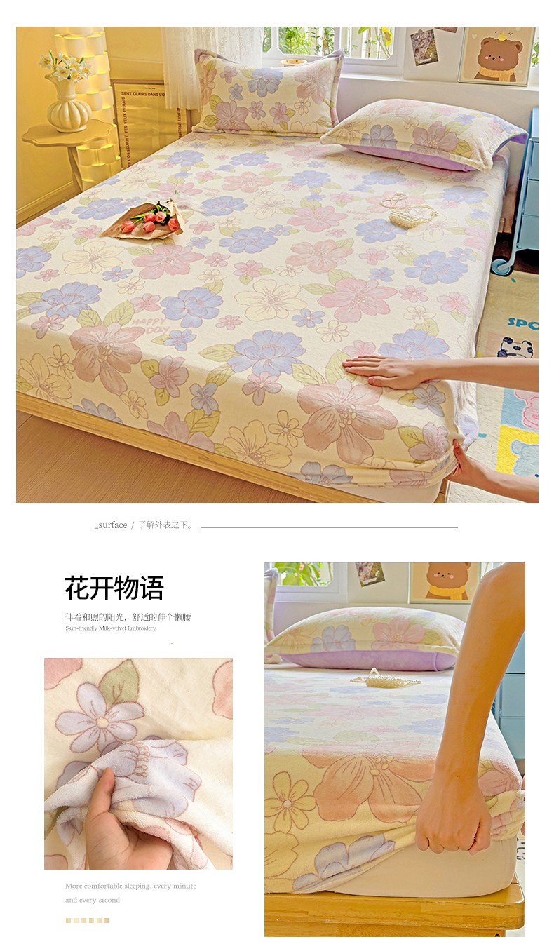 商品名称:卡普二店 2024新款牛奶绒印花单床笠 花开物语