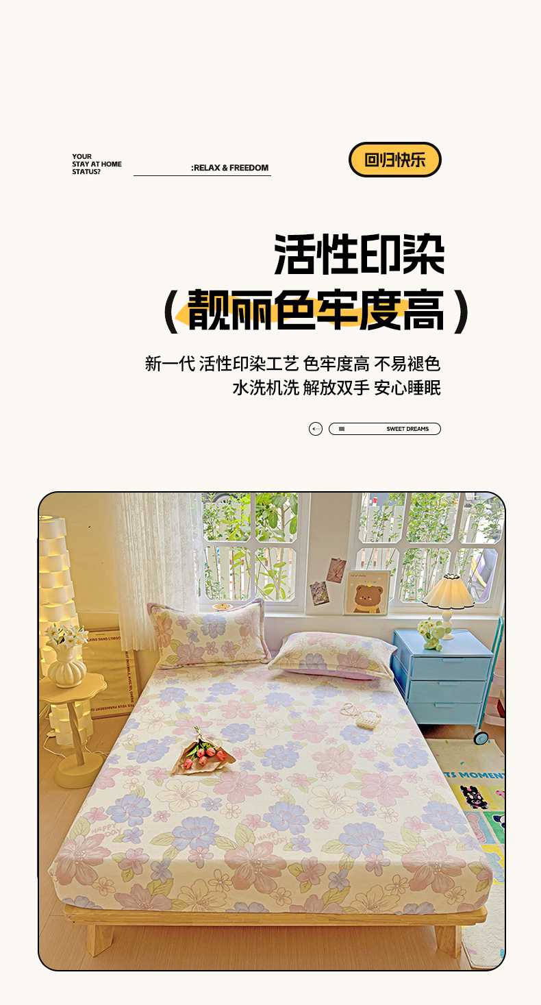 卡普二店 2024新款爆款加厚卡通小清新全棉纯棉学生宿舍三件套床笠隔天可拿 快乐追梦,快乐追梦