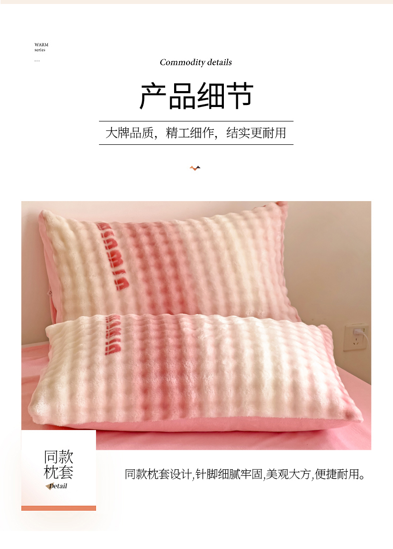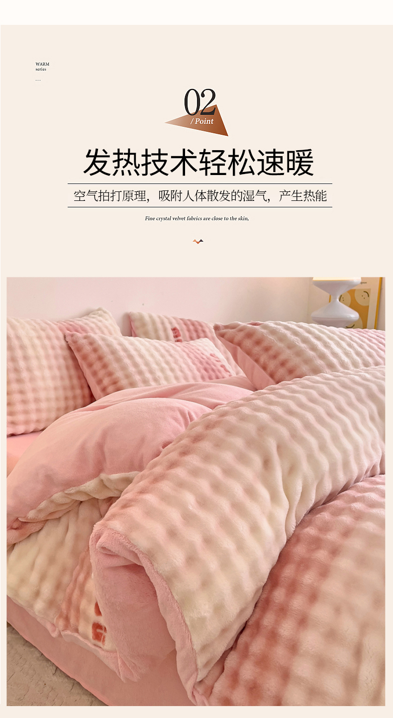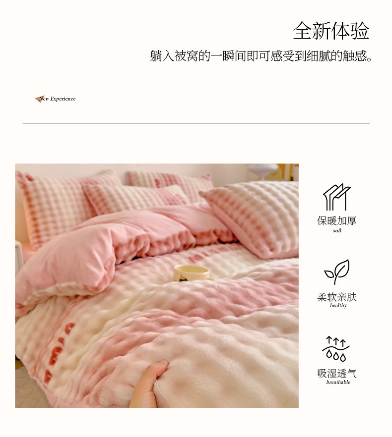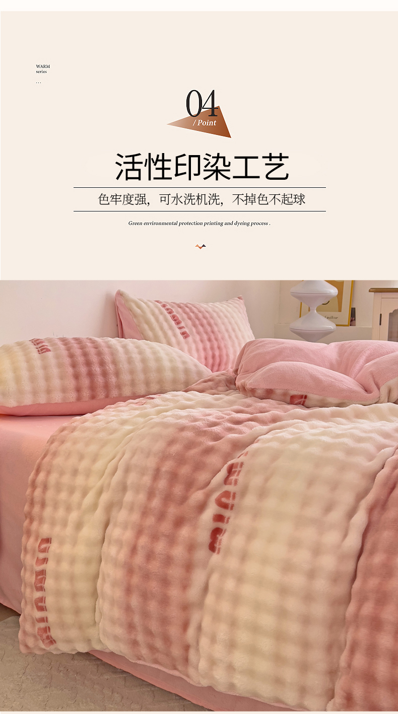 商品名称:金爱家 2024新款A类高克重云朵牛奶泡泡绒四件套 泡泡绒-字母粉