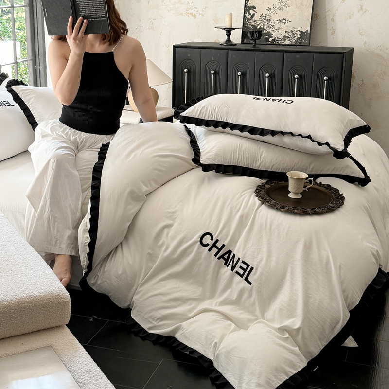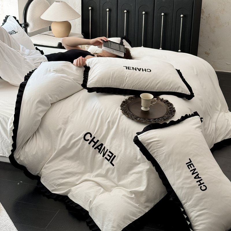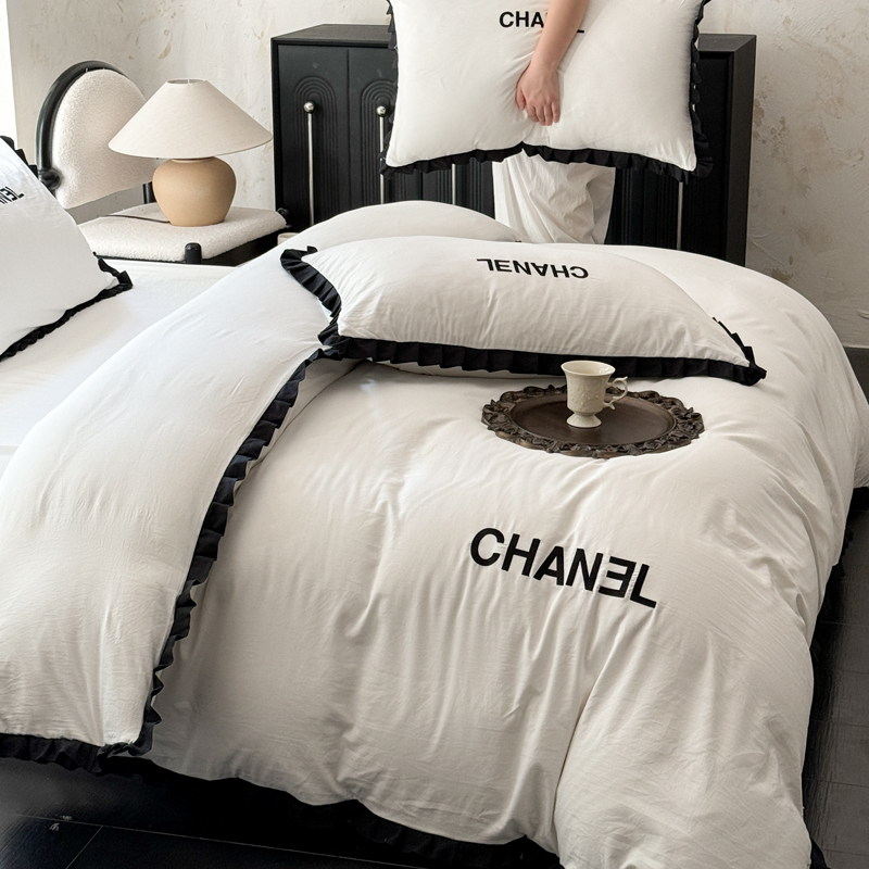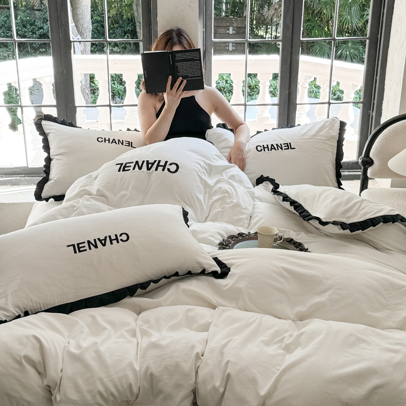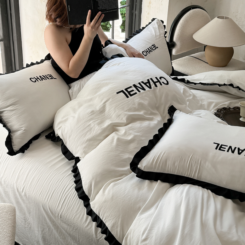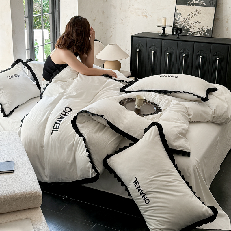 仟网汇 2024新款韩版花边刺绣款四件套 白色
