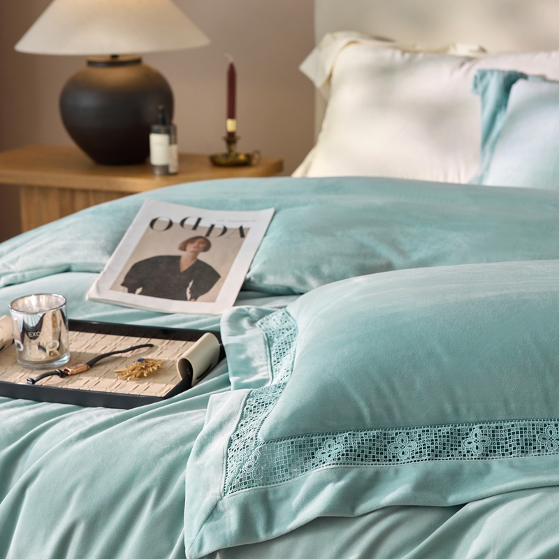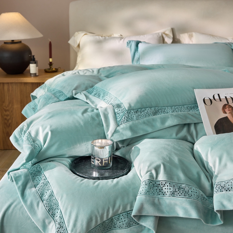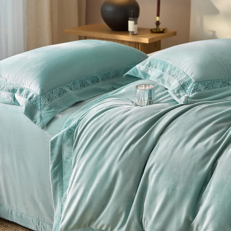 (总)时亿 2023新款加厚保暖獭兔绒四件套,抹茶绿,肉肉粉