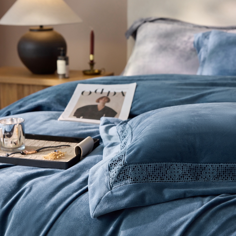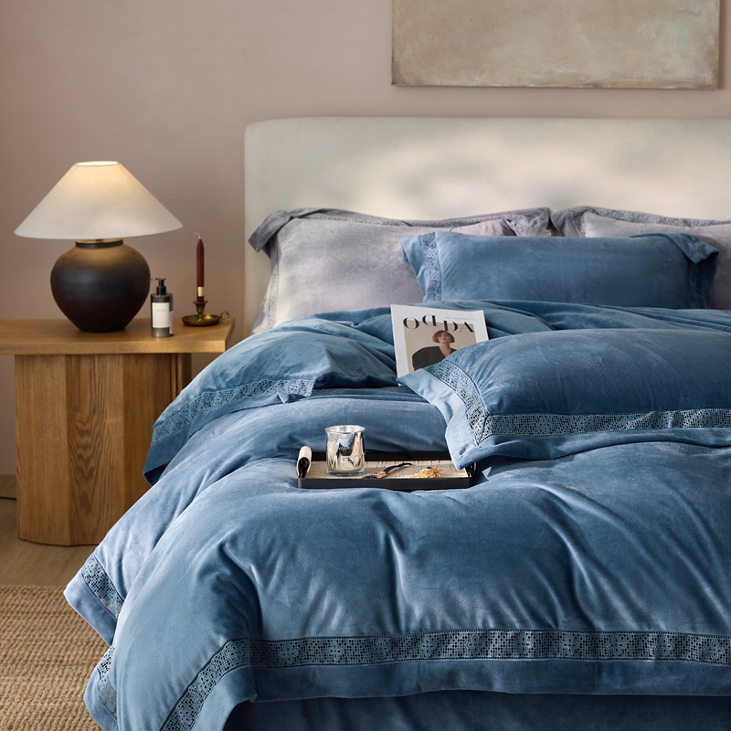 时亿家居 2024新款300g婴肤绒四件套-爵士系列 爵士 雾蓝