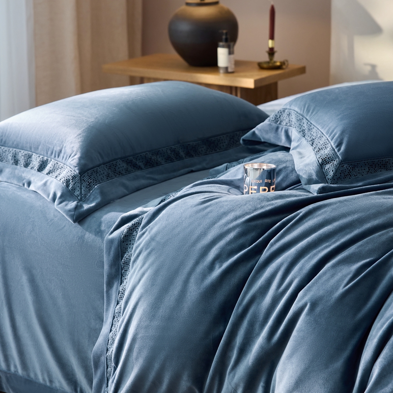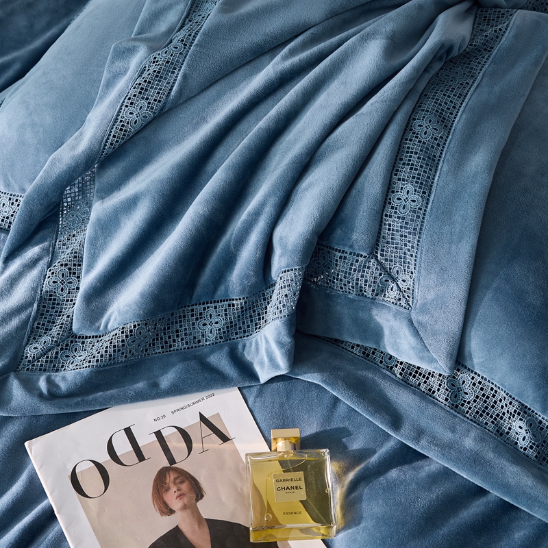 商品名称:时亿家居 2024新款300g婴肤绒四件套-爵士系列 爵士 雾蓝