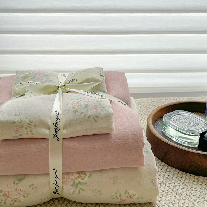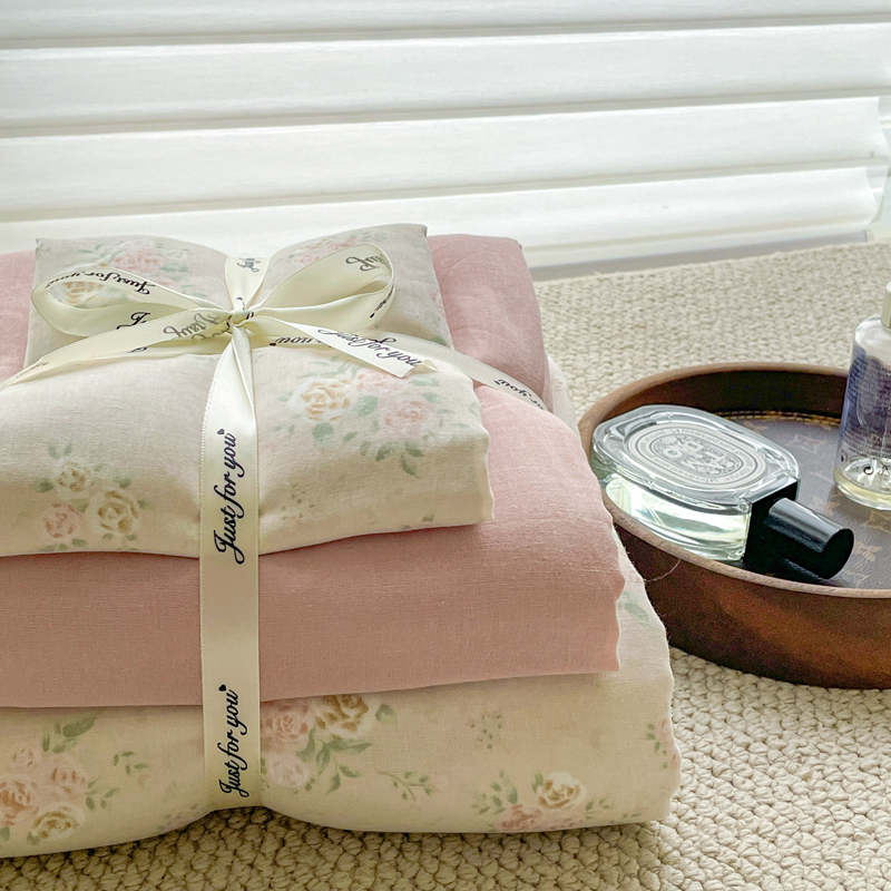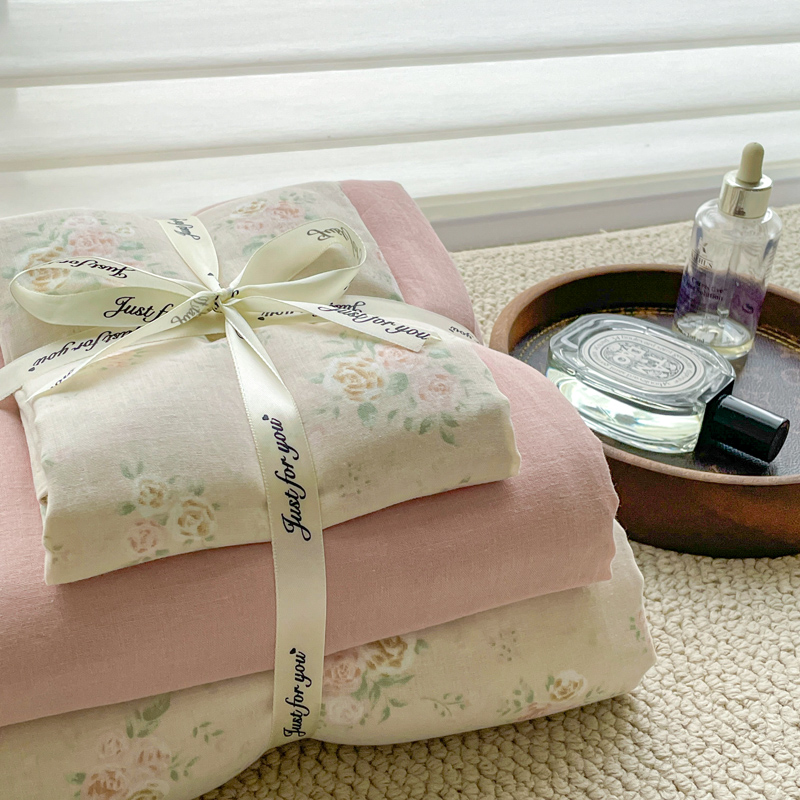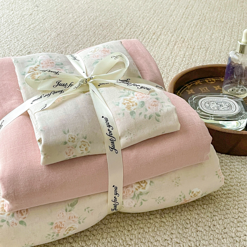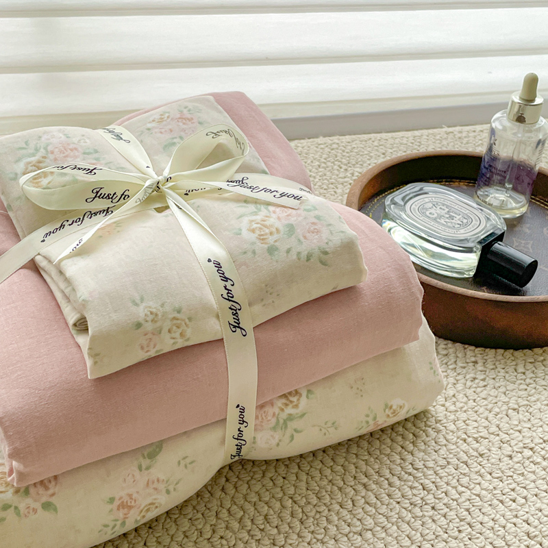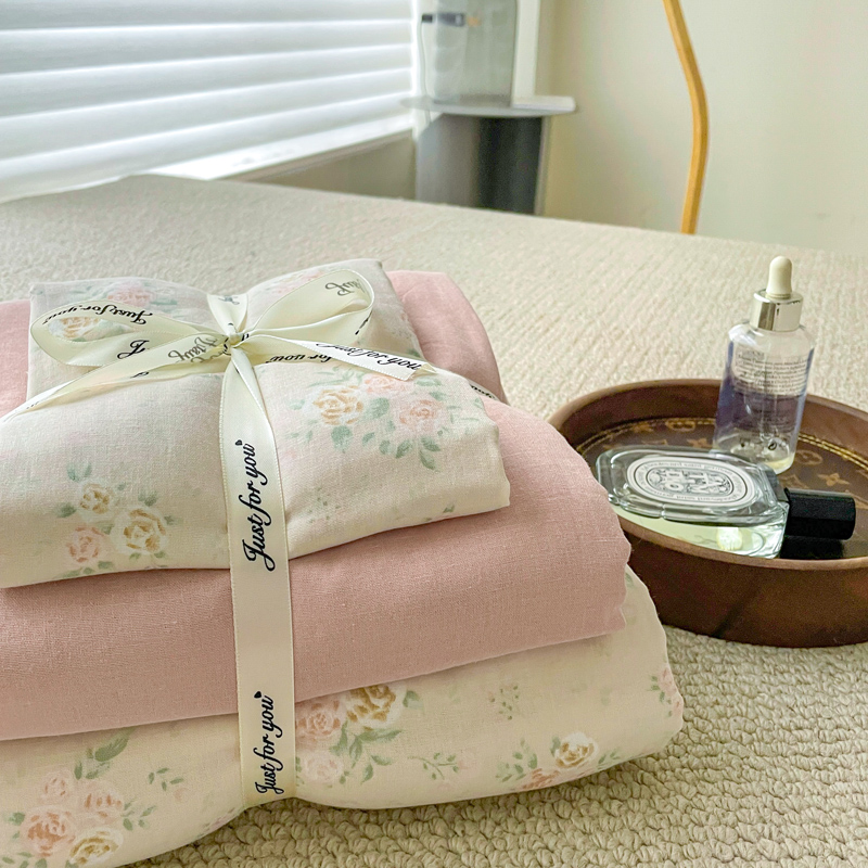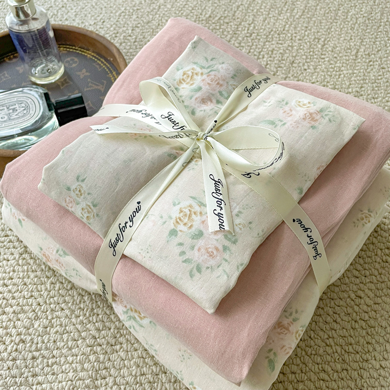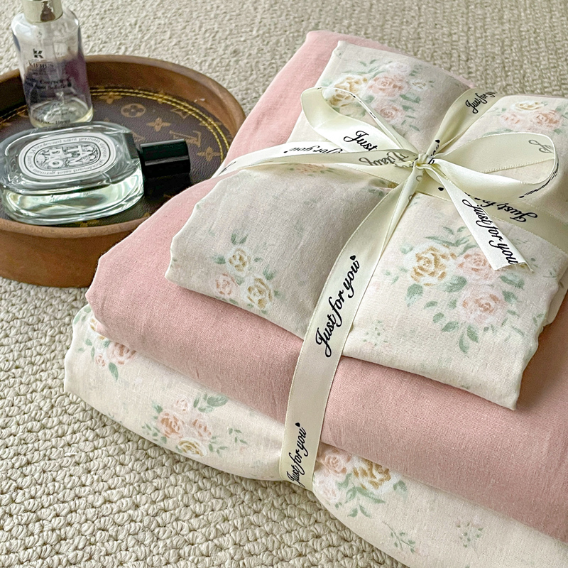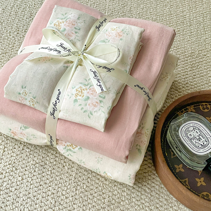 商品名称:一比一家纺 2025新款全棉母婴级抗菌有氧全棉双层纱亲肤全棉小清新印花三件套四件套 松子小姐-粉