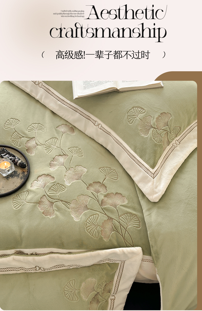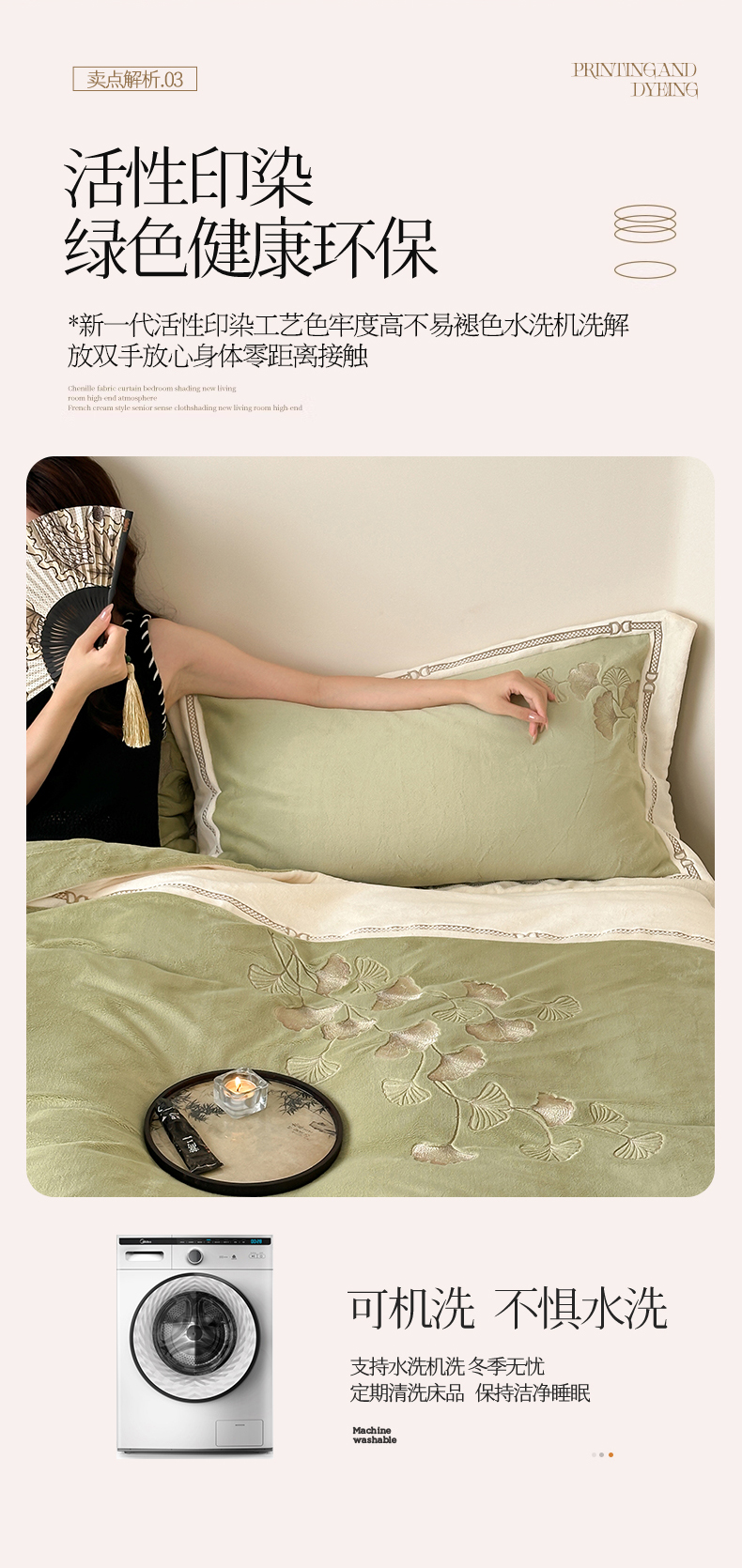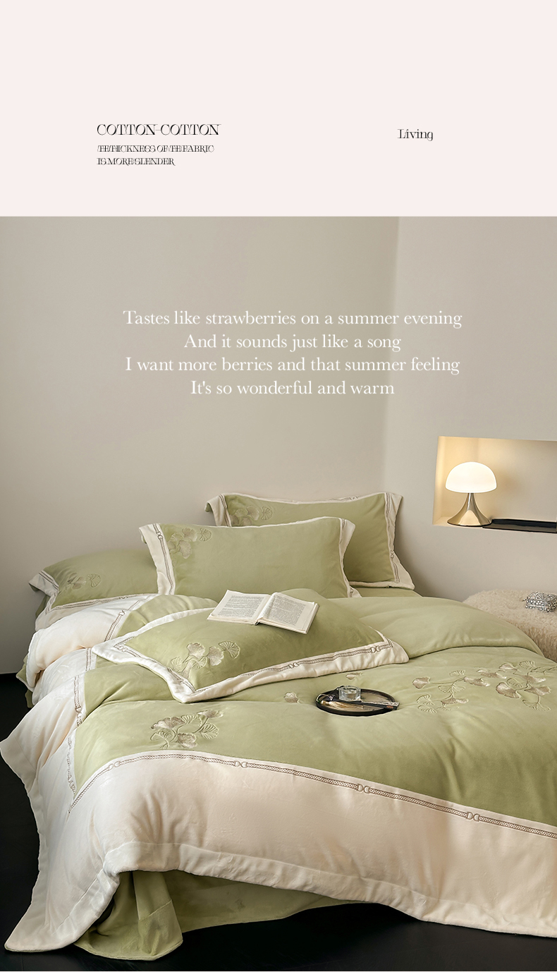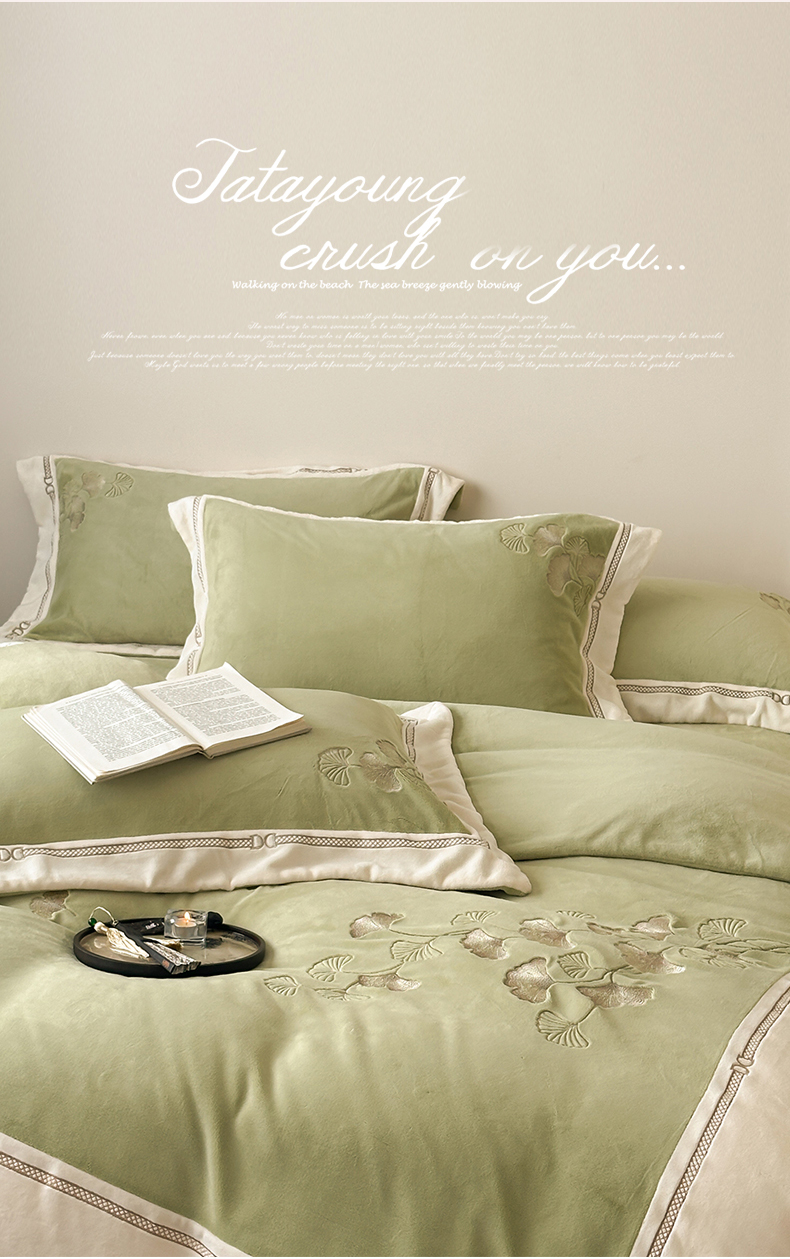 2024新款高克重牛奶绒绣花四件套-叶起华裳 抹茶绿