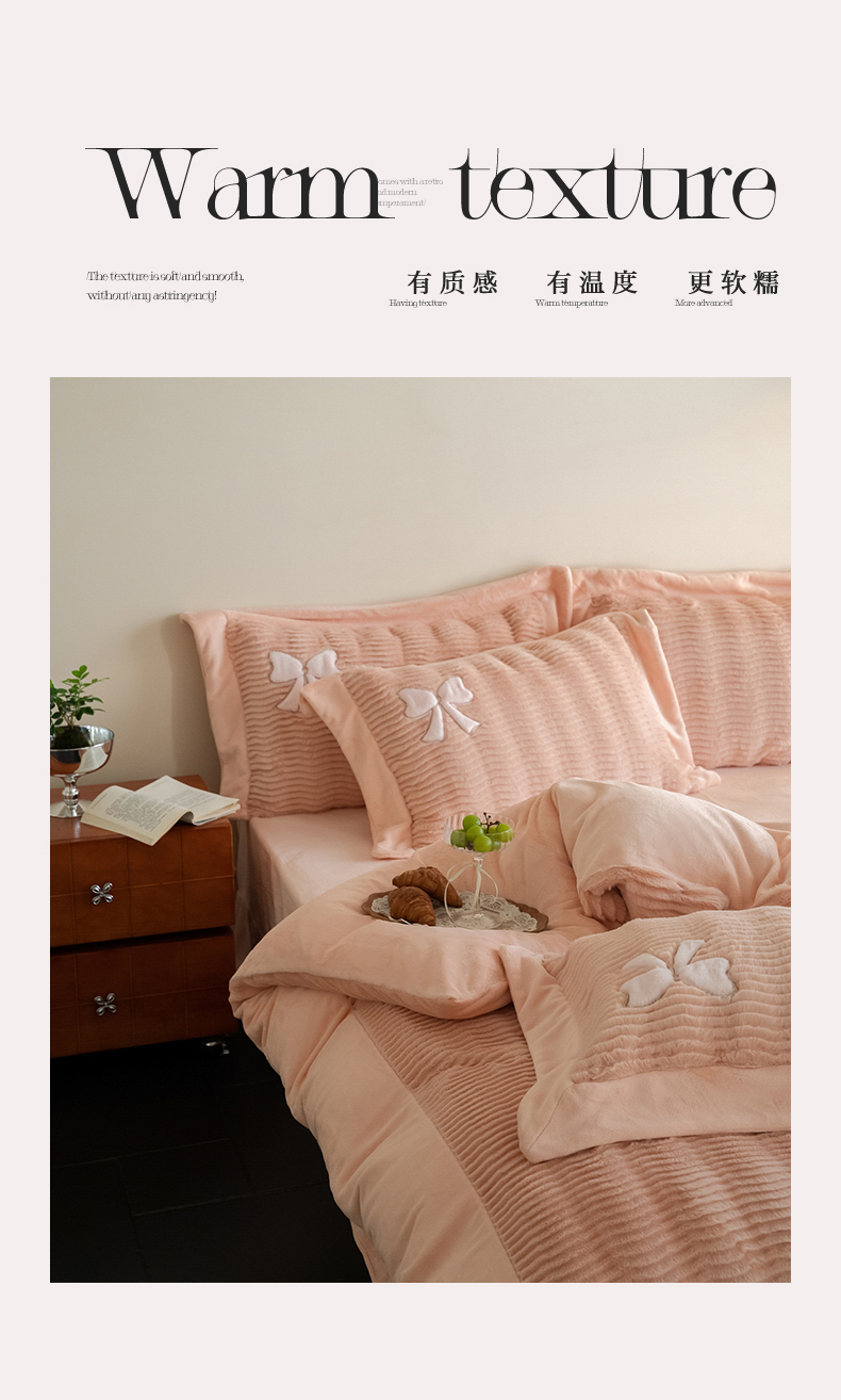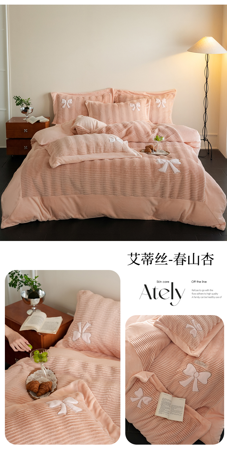 商品名称:2024新款A版B版高克重牛奶绒四件套-艾蒂丝 艾蒂丝-春山杏