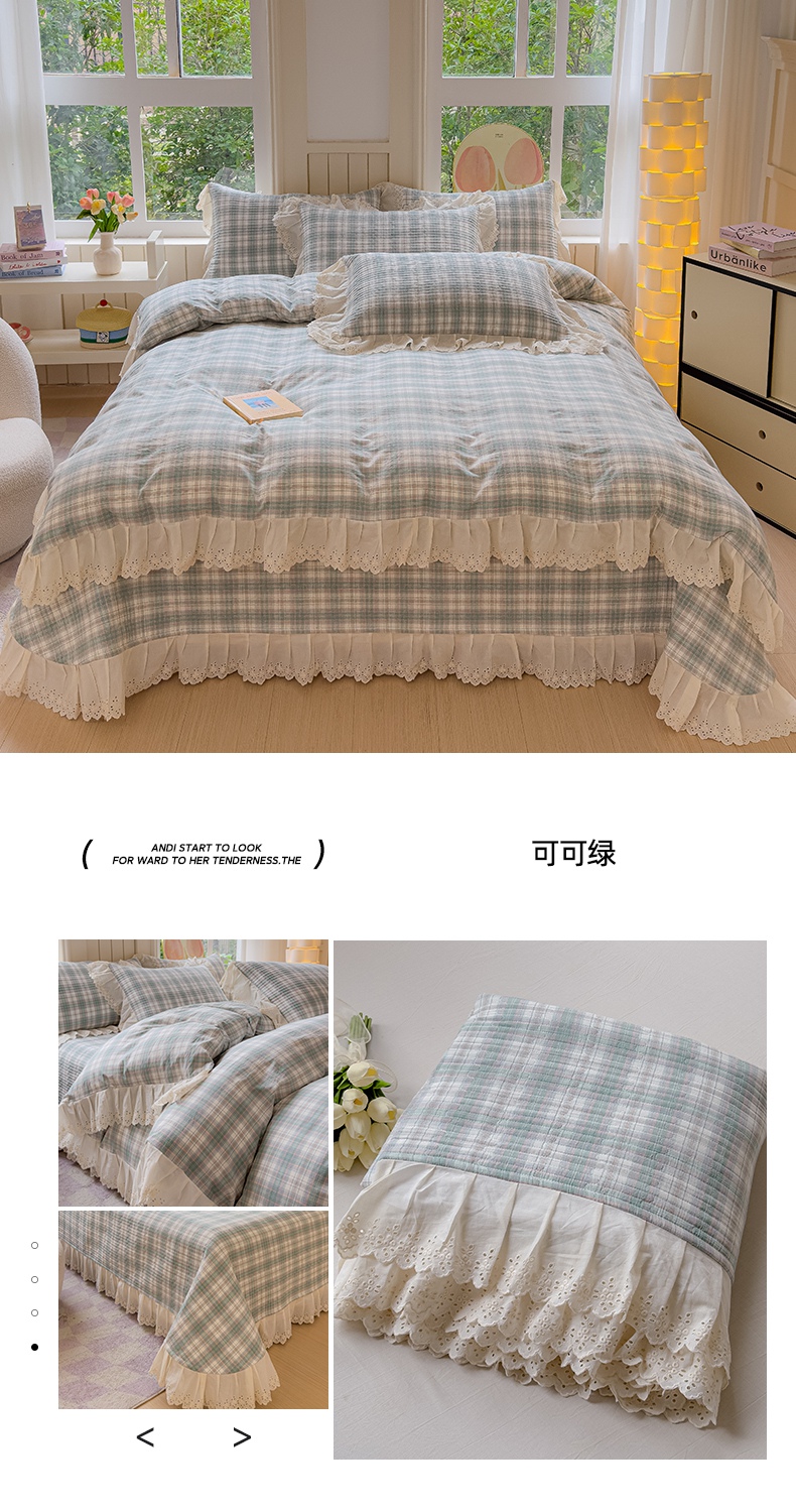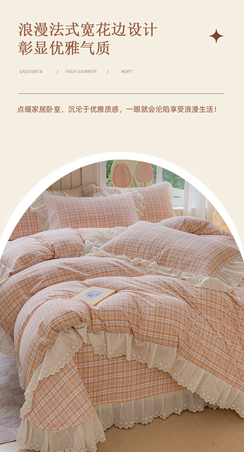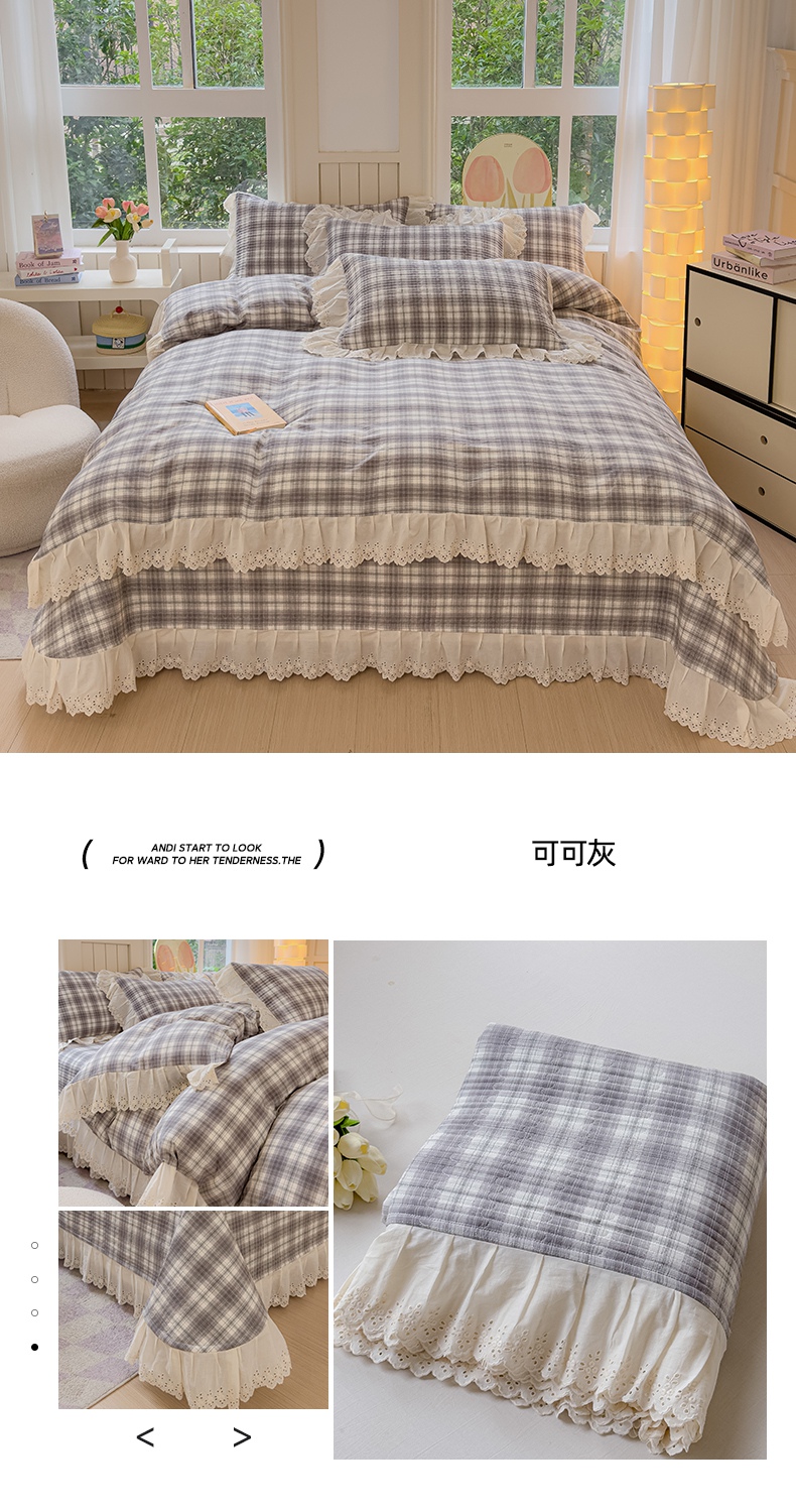 商品名称:久典家居 2024新款A类法式全棉色织水洗棉床盖四件套 可可灰