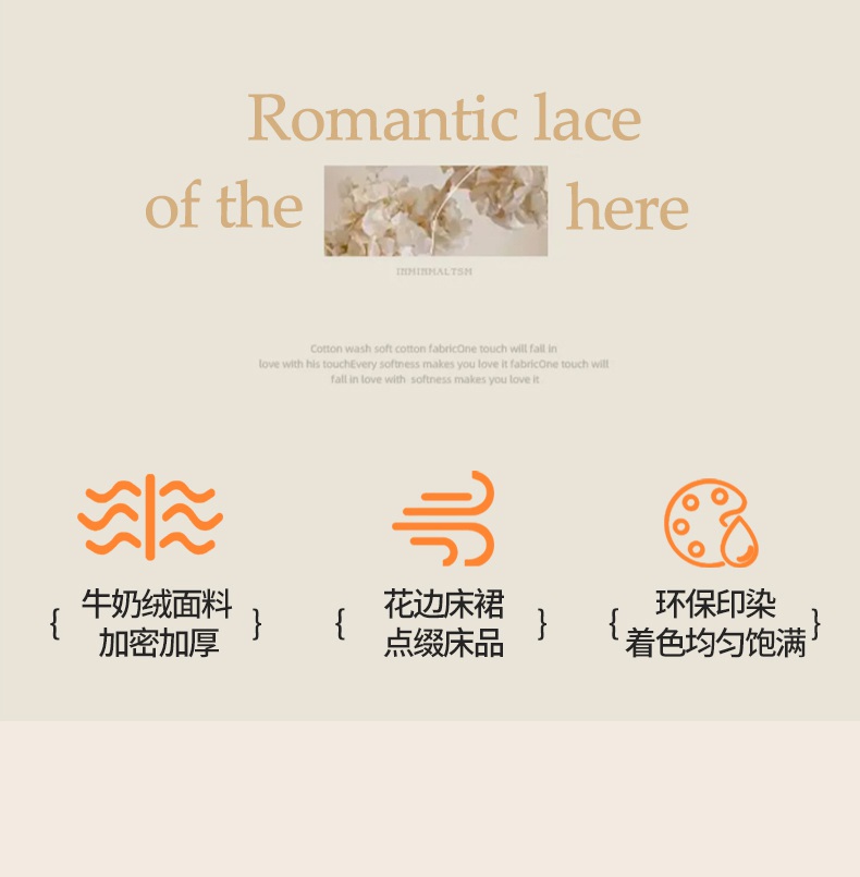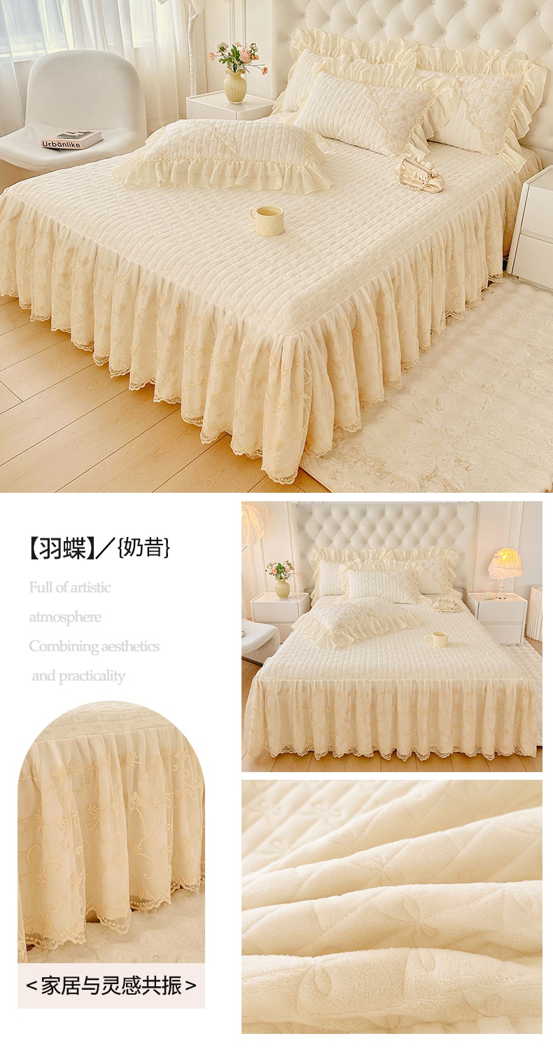 (总)罗艺轩 2025新款牛奶绒浪漫花边床裙款四件套-暖洋洋(报活动和优惠券后控价99起/控价107起),暖洋洋-白,暖洋洋-豆沙,暖洋洋-灰,暖洋洋-酒红,暖洋洋-绿,暖洋洋-奶咖