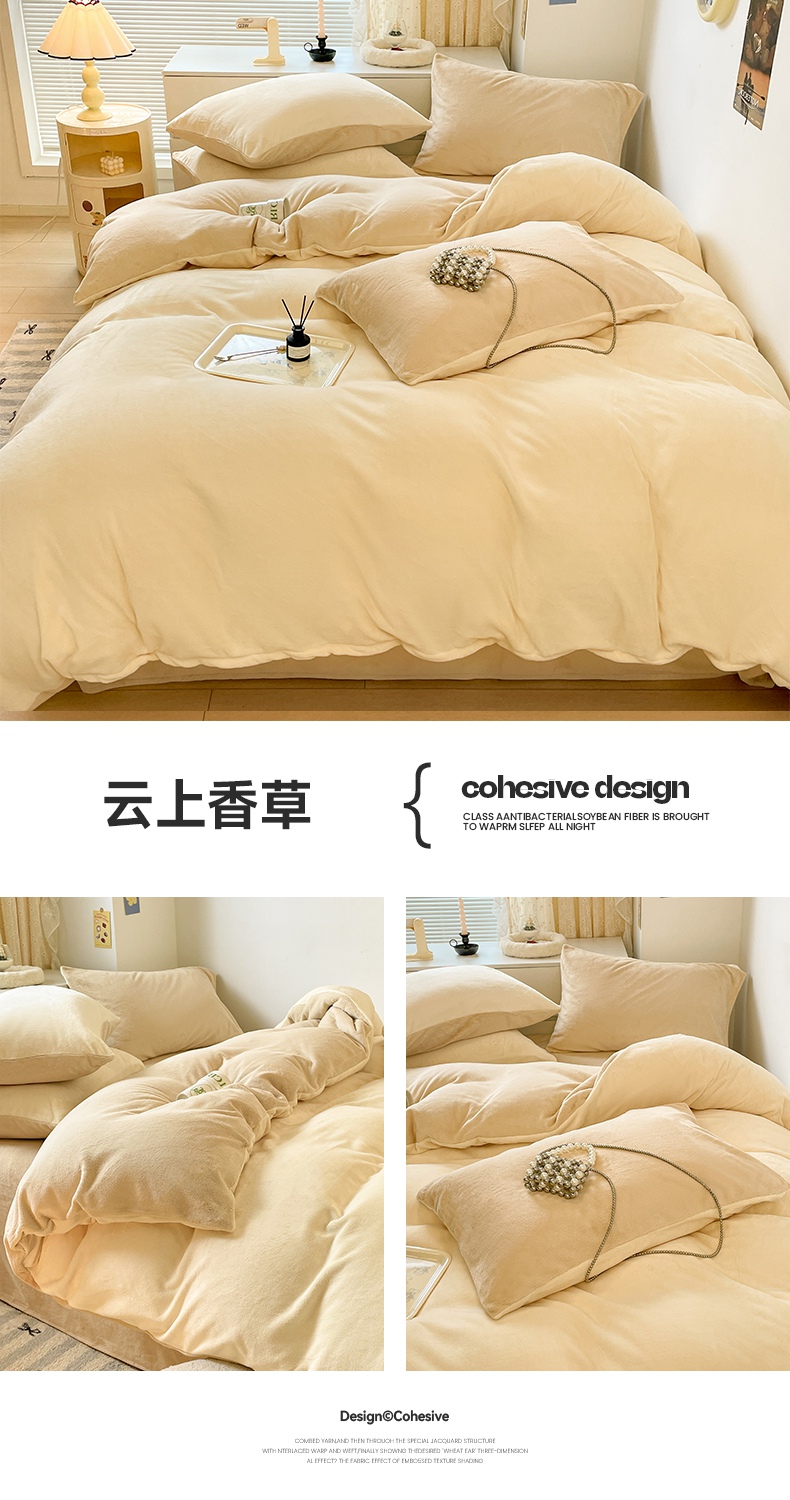 寐眠 新款牛奶绒纯色双拼四件套-风格二 云上香草