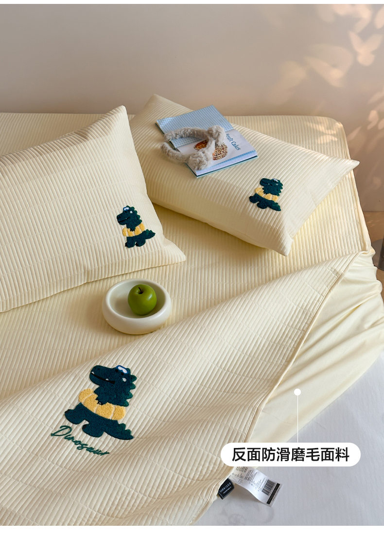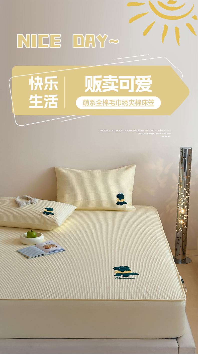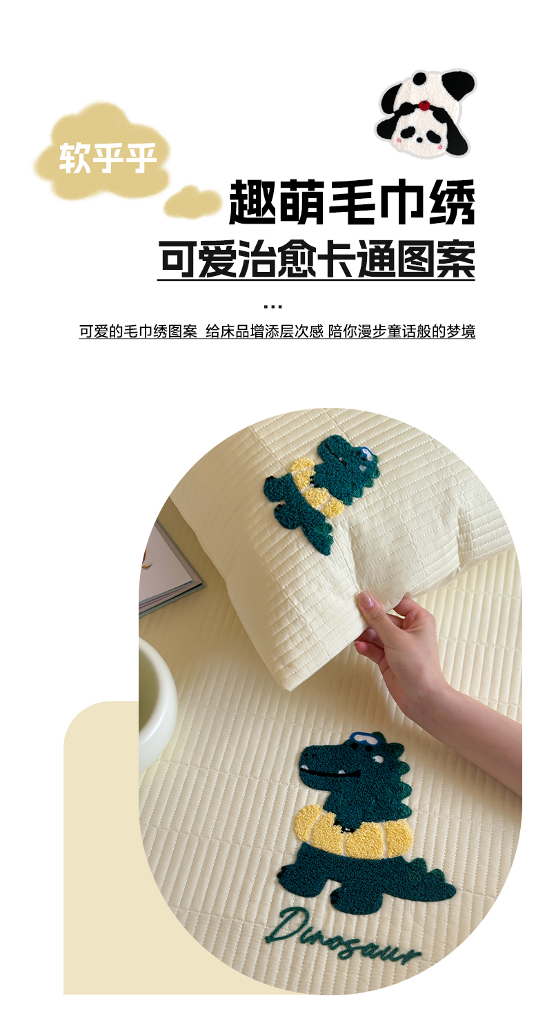 商品名称:三味舒屋 2024新款萌系卡通毛巾绣夹棉床笠 恐龙帕克黄