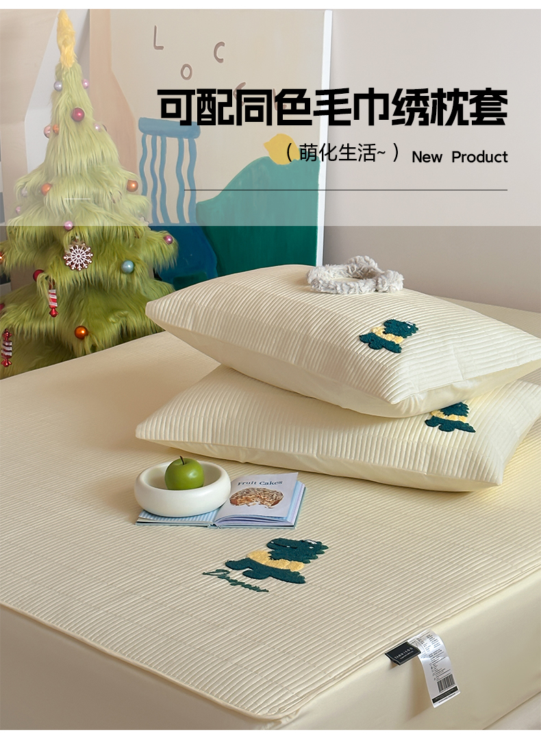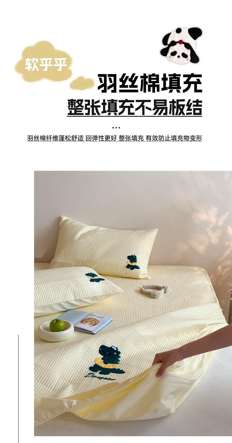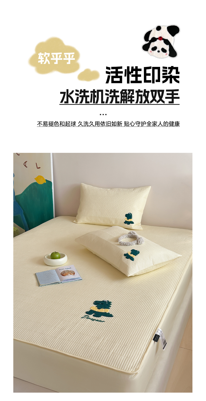 商品名称:三味舒屋 2024新款萌系卡通毛巾绣夹棉床笠 恐龙帕克黄