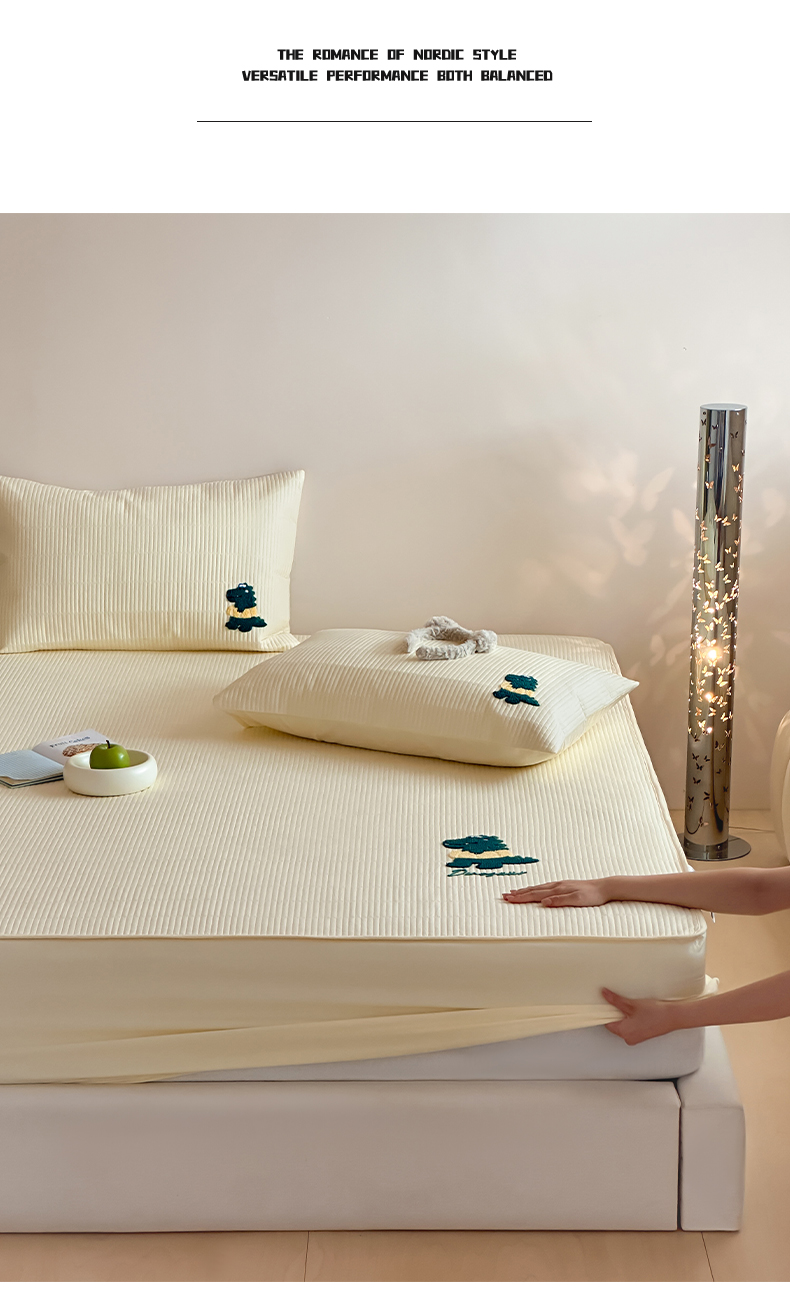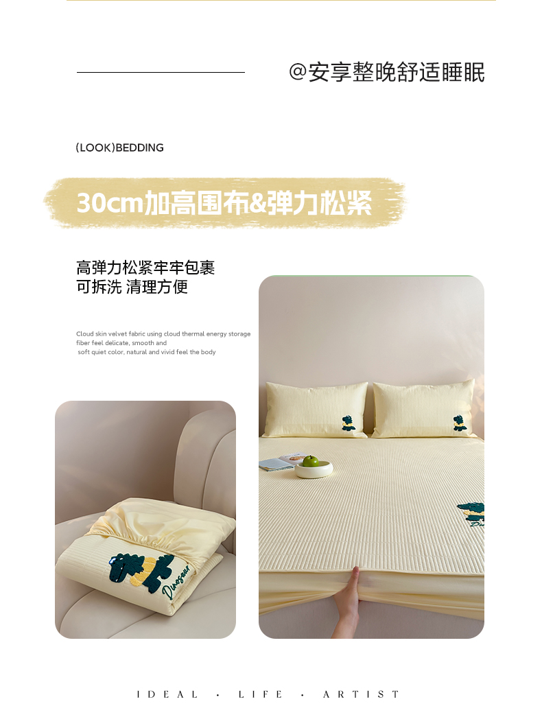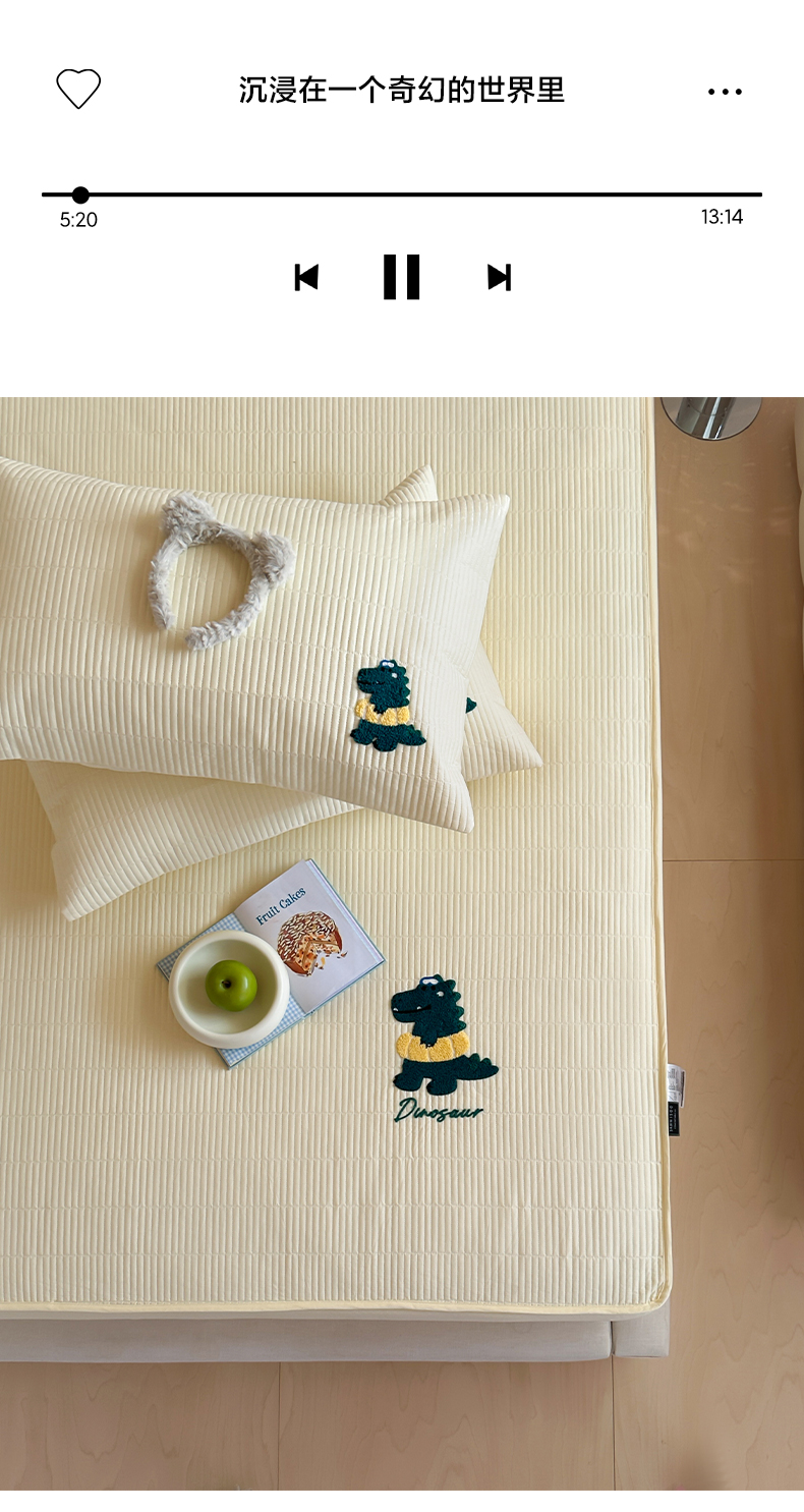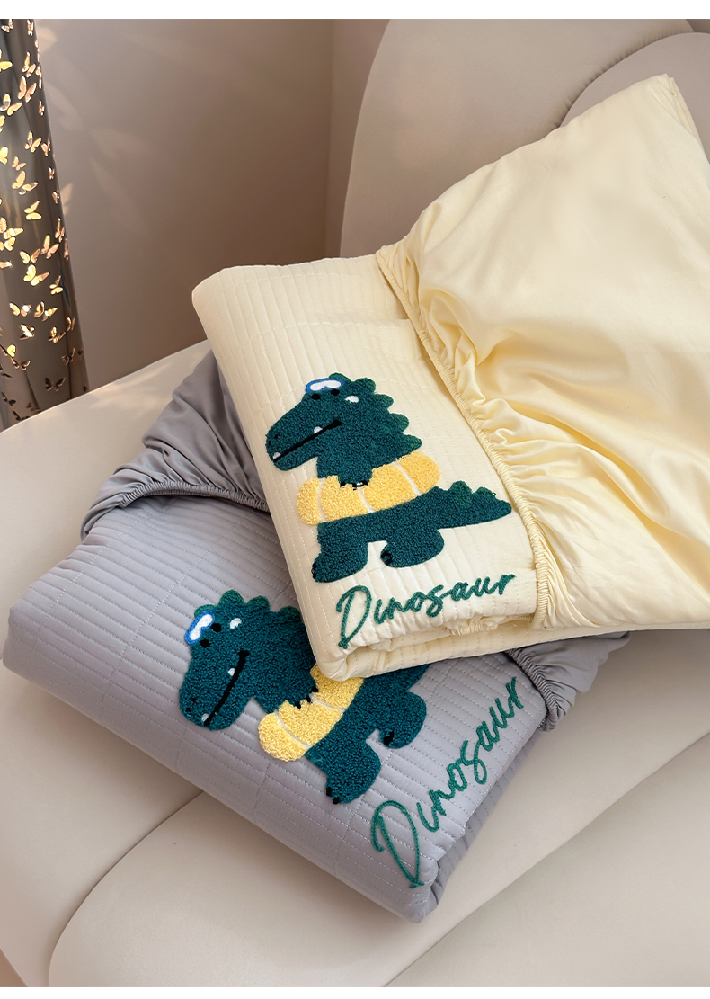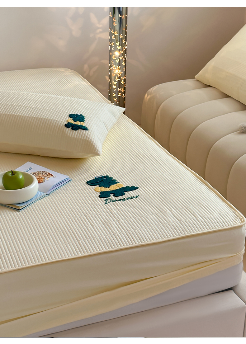 三味舒屋 2024新款萌系卡通毛巾绣夹棉床笠 恐龙帕克黄