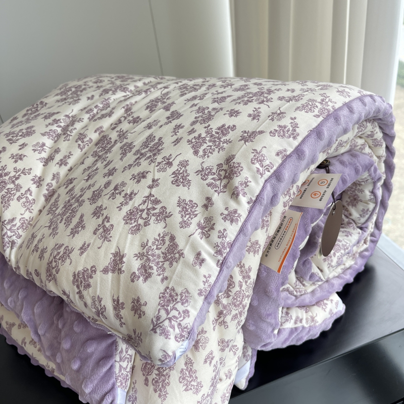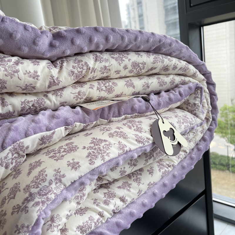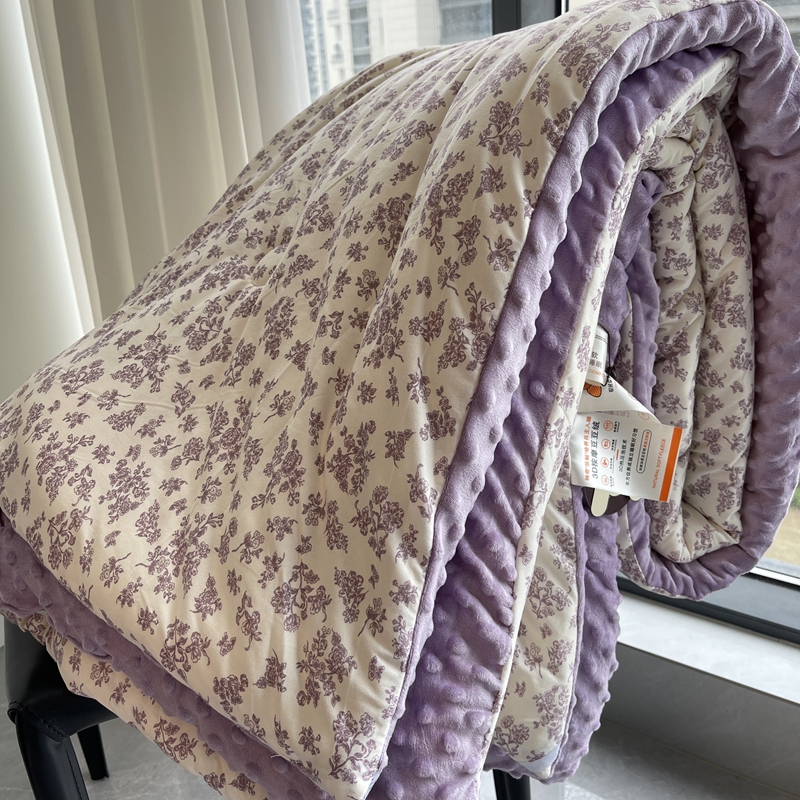 奈萝家纺 2024新款秋冬印花针织棉豆豆绒春秋被冬被 薄雾花园