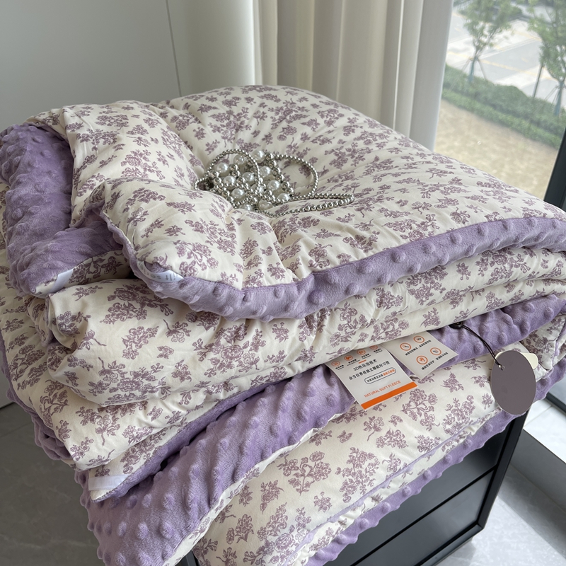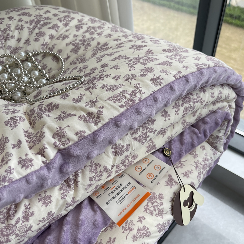 商品名称:奈萝家纺 2024新款秋冬印花针织棉豆豆绒春秋被冬被 薄雾花园