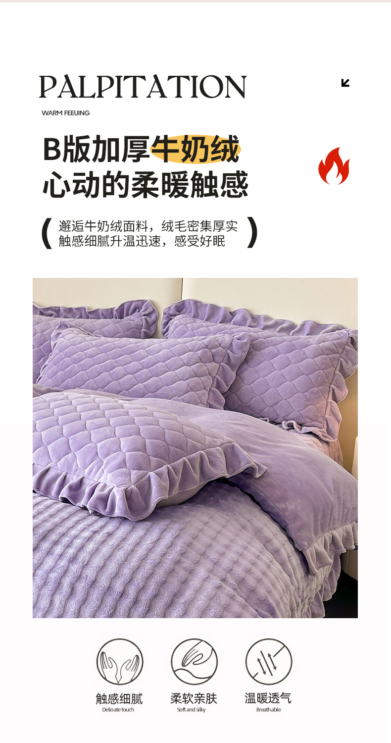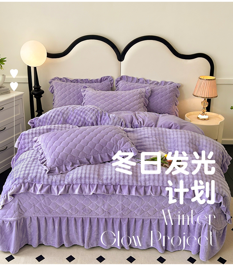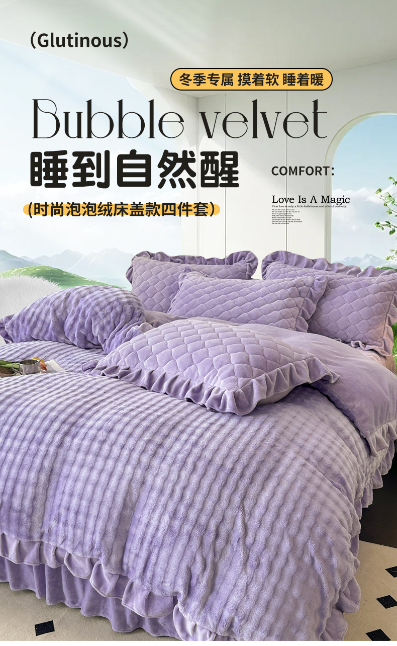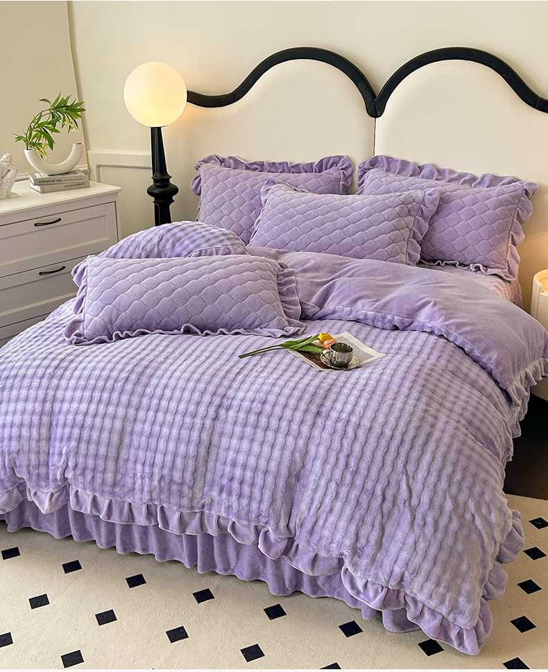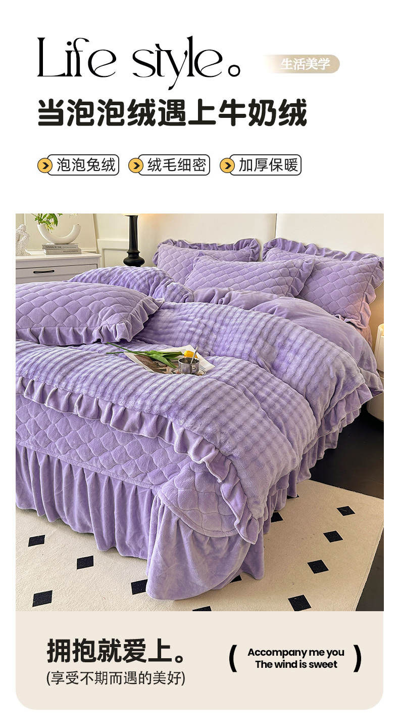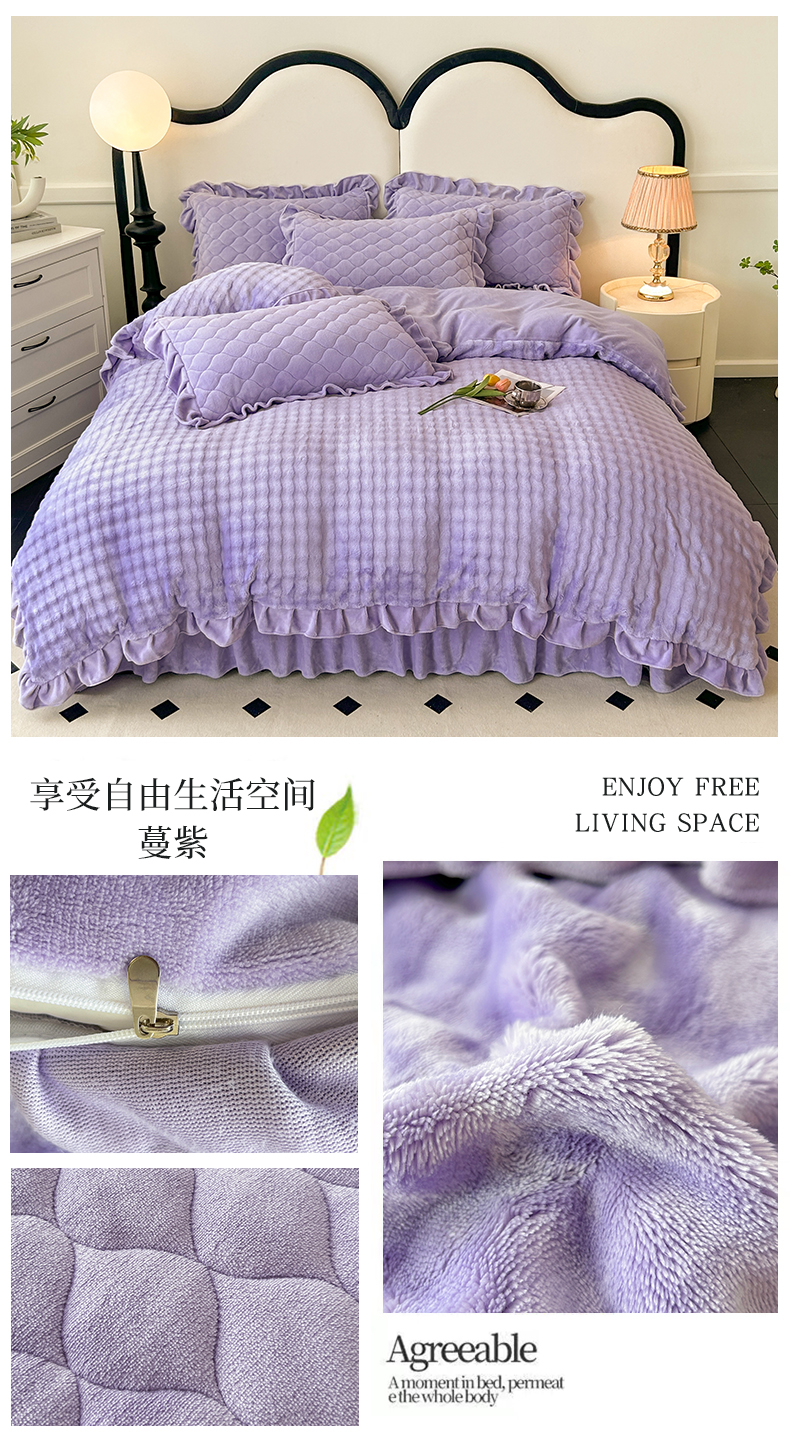 商品名称:屹成家纺 2024新款牛奶绒泡泡款床盖四件套 泡泡款-蔓紫