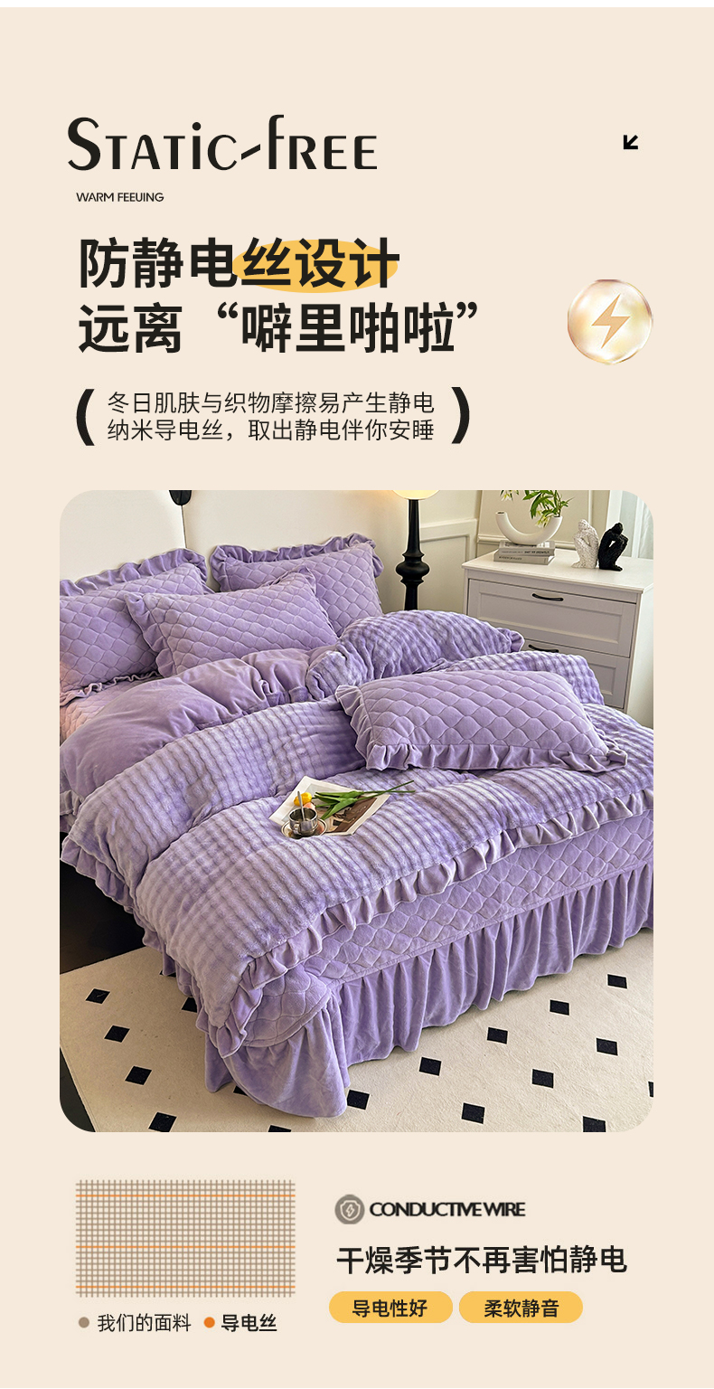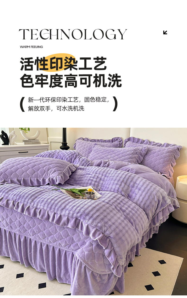 (总)屹成家纺2025新款水晶绒夹棉绗缝床裙四件套(塞纳河畔)四件套起售价不低于230元,大红,豆沙,翡翠绿,粉玉,橄榄绿,蔚蓝,银灰