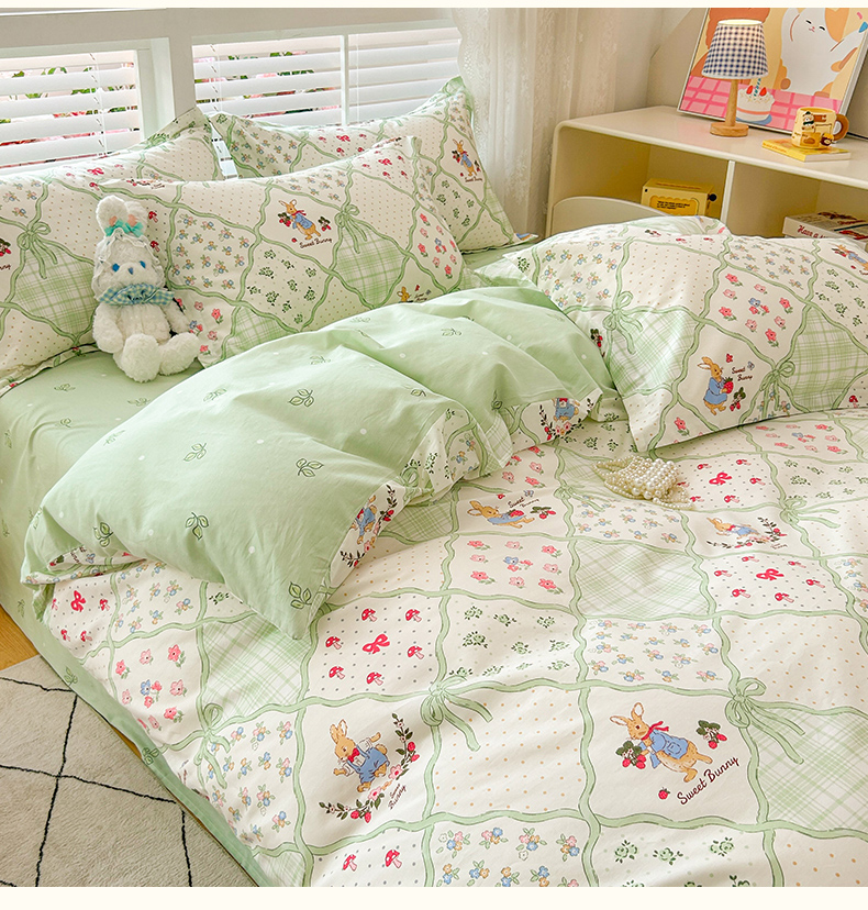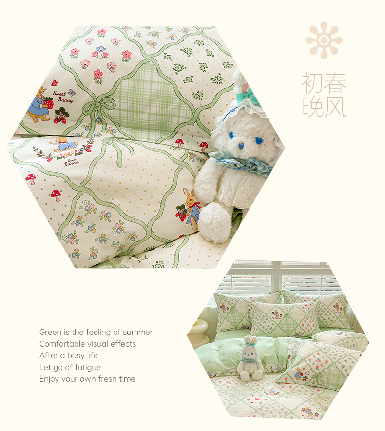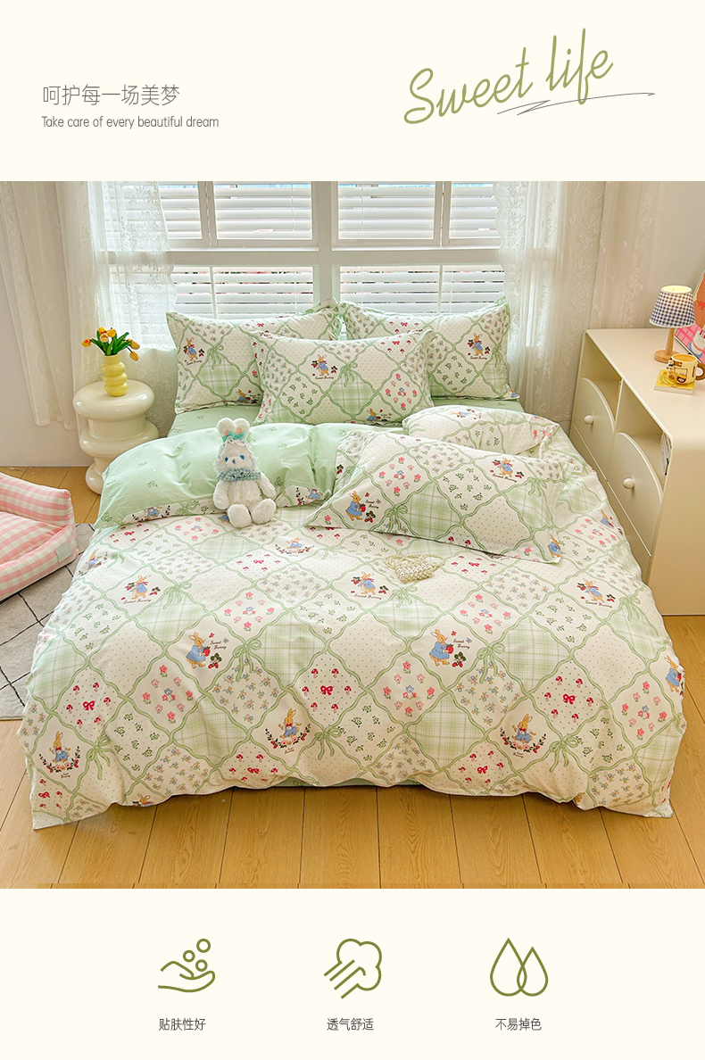 (总)红馆 2023新款12868全棉印花四件套,春浅,花期,简花,里约,漫步花丛,梦想花园,紫韵,字母兔