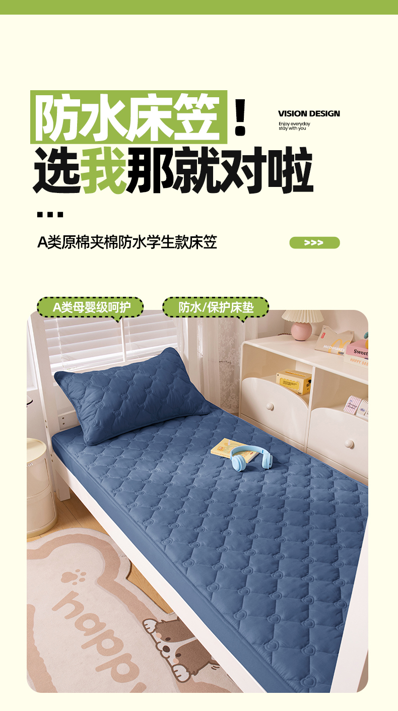商品名称:暖季家纺 2025新款心芙系列夹棉防水床笠学生款 心芙-宝石蓝