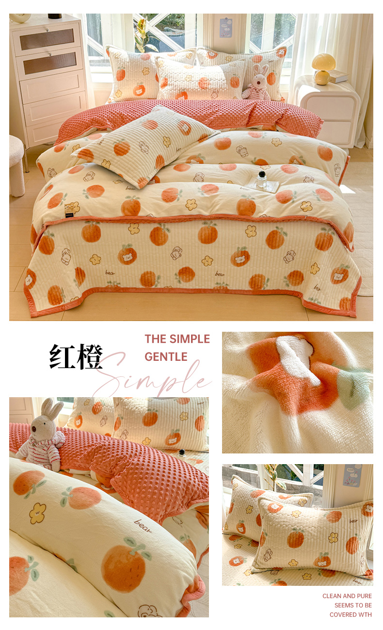 梦可莱家居 2024新款牛奶豆豆绒印花床盖四件套 红橙