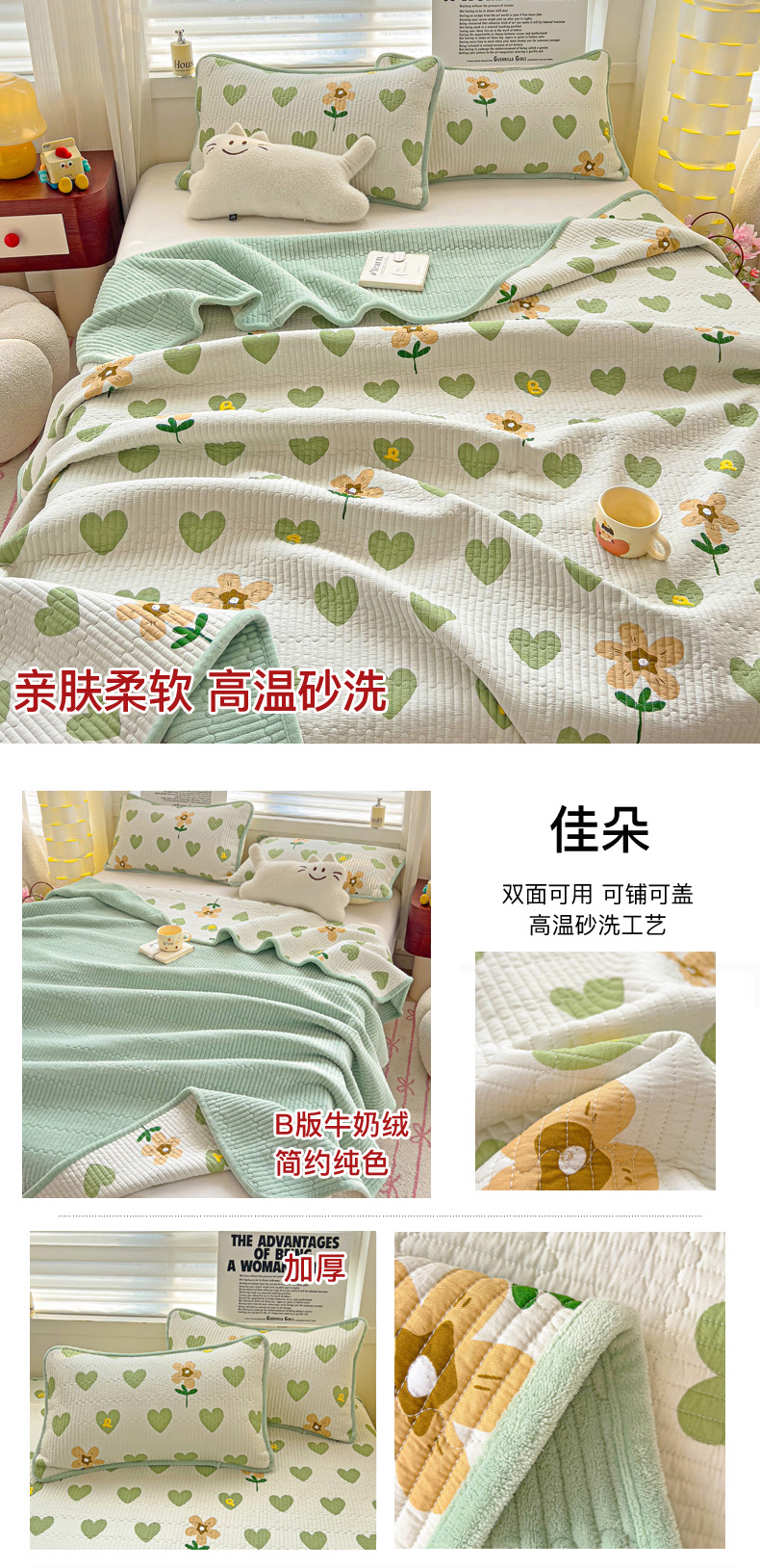 • 91家纺网 家纺一手货源 找家纺 2024新款水洗全棉牛奶绒床盖四件套 佳朵